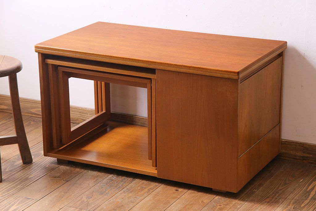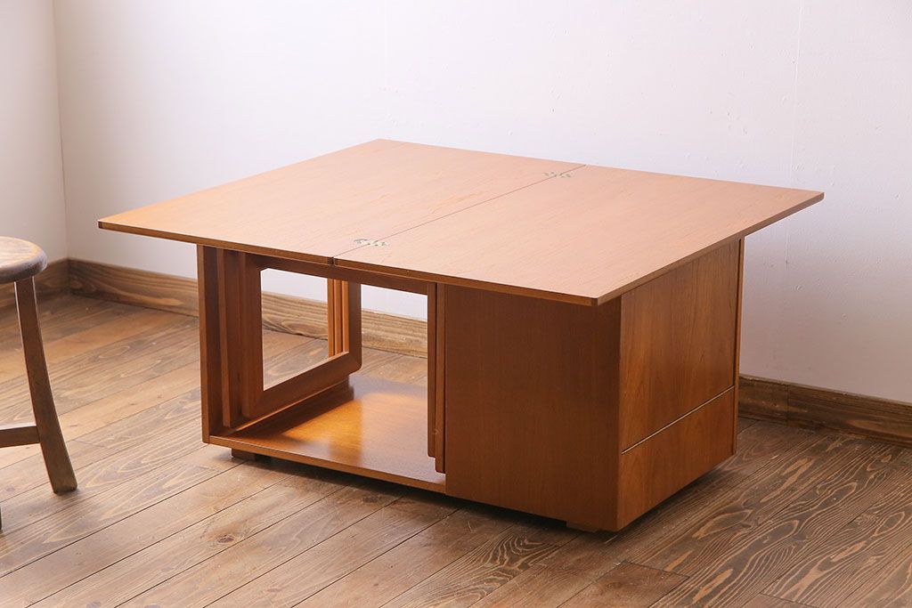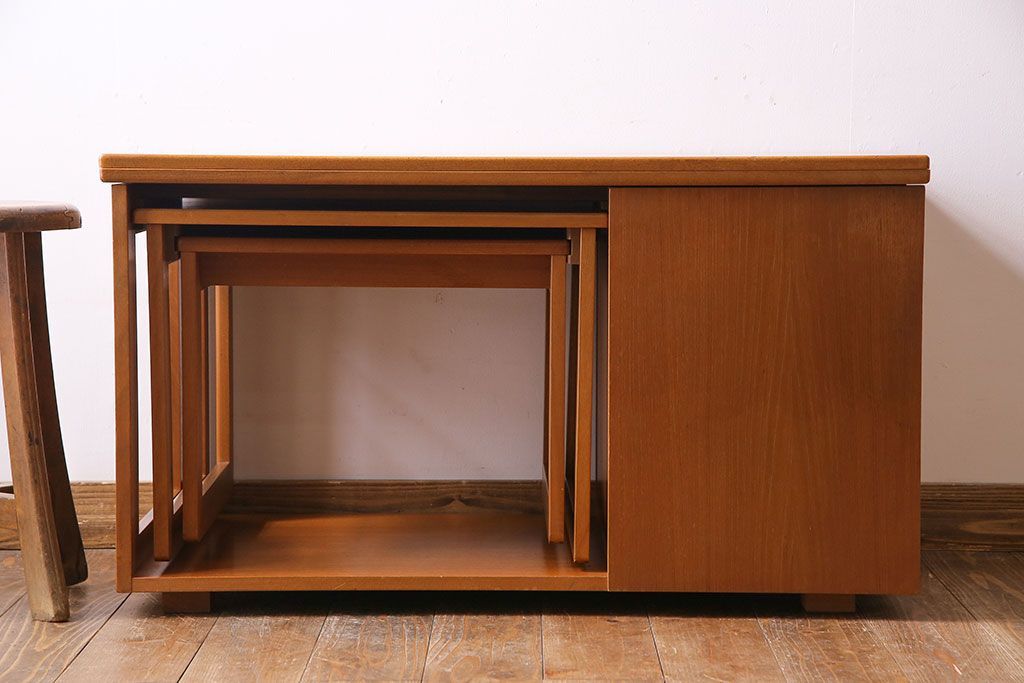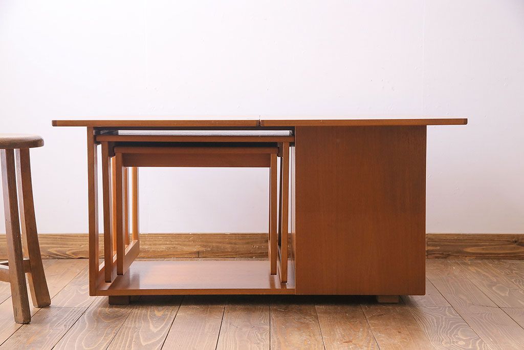 ヴィンテージ家具 北欧ビンテージ チーク材 レア品!天板拡張式のネストテーブル(エクステンションテーブル、センターテーブル、サイドテーブル)