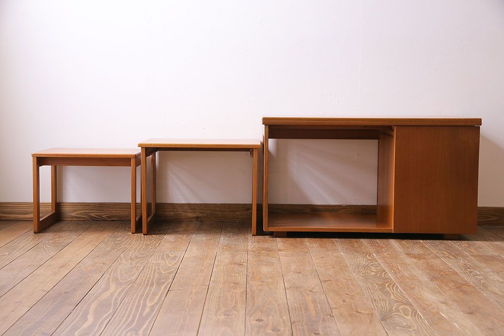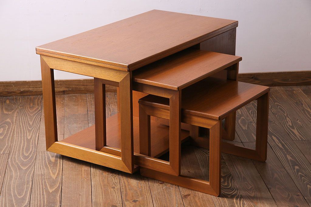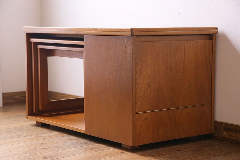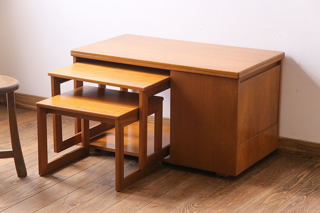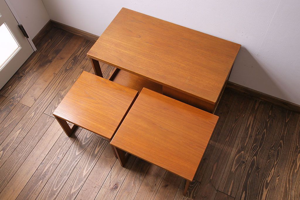 ヴィンテージ家具 北欧ビンテージ チーク材 レア品!天板拡張式のネストテーブル(エクステンションテーブル、センターテーブル、サイドテーブル)