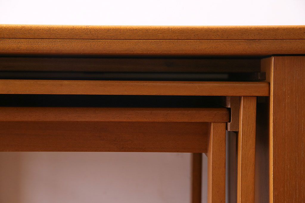 ラフジュ工房> テーブル> ネストテーブル > ヴィンテージ家具 北欧ビンテージ チーク材 レア品!天板拡張式のネストテーブル(エクステンションテーブル、センターテーブル、サイドテーブル)
