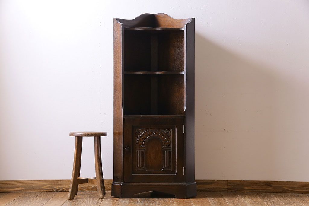 ラフジュ工房> オープンラック・シェルフ> ディスプレイラック > ヴィンテージ家具 イギリスビンテージ シックで落ち着いた雰囲気のコーナーキャビネット(飾り棚、シェルフ)