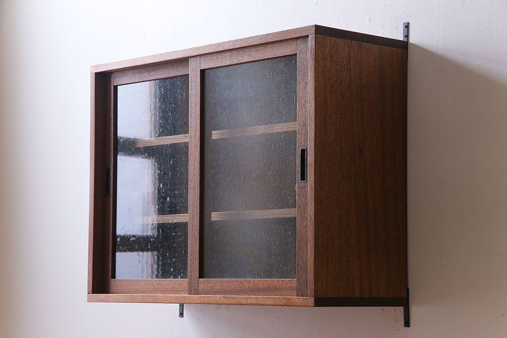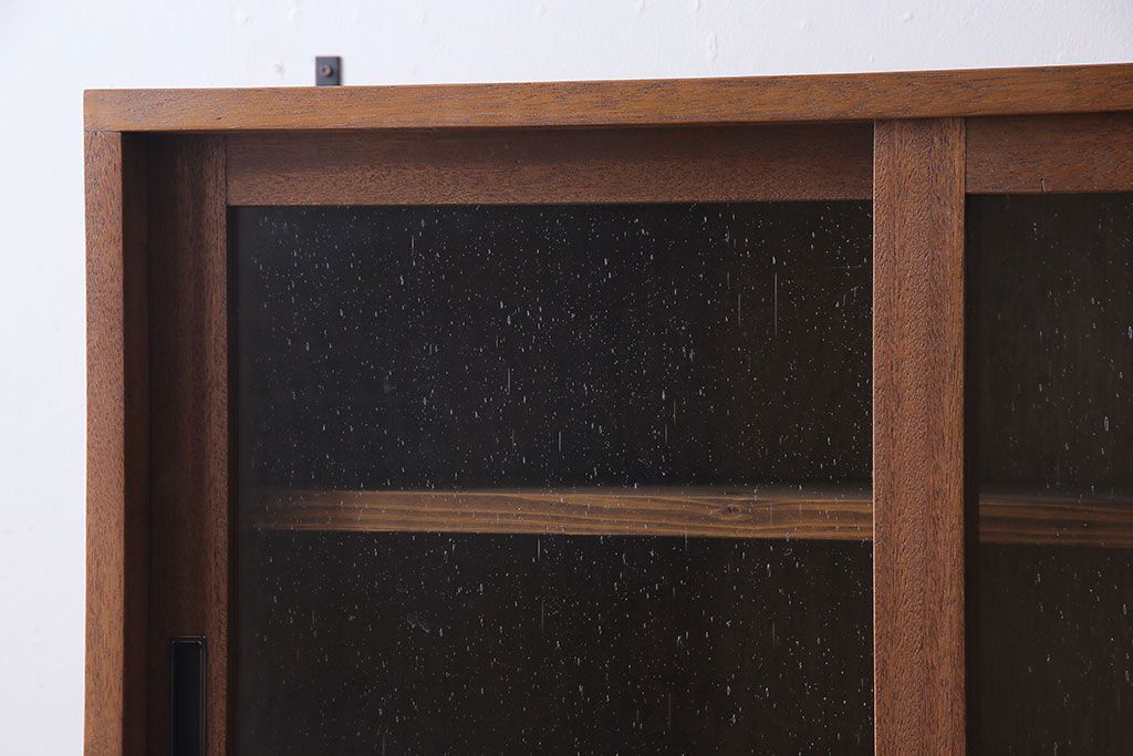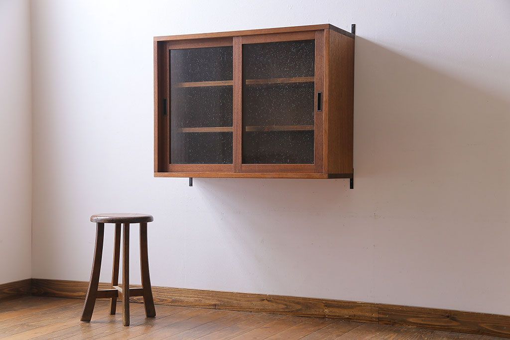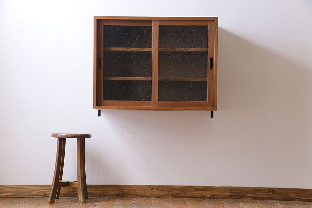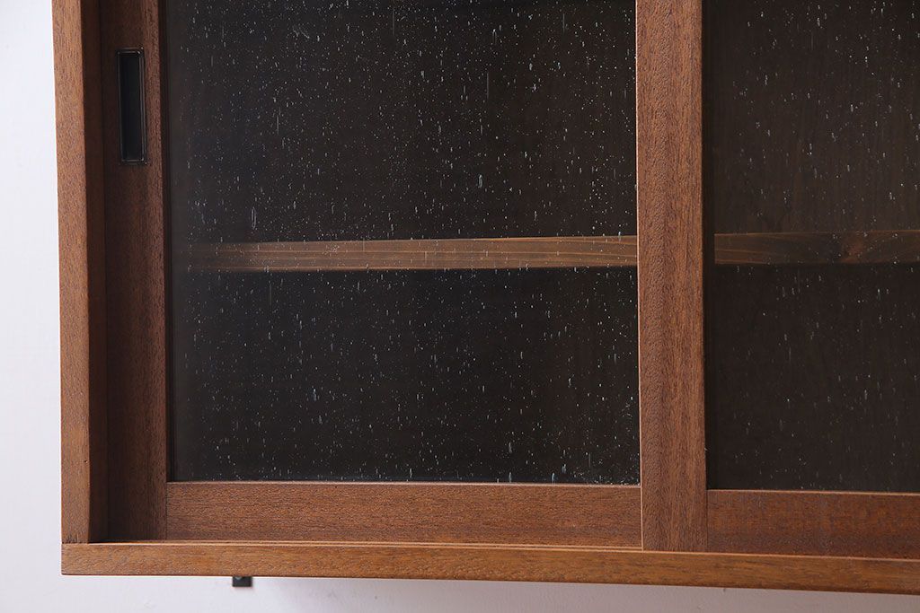 ラフジュ工房> キャビネット・戸棚> ウォールキャビネット > ラフジュ工房オリジナル 気泡ガラス入り 古材を活かしたウォールシェルフ(ウォールキャビネット、壁掛け収納棚、戸棚)