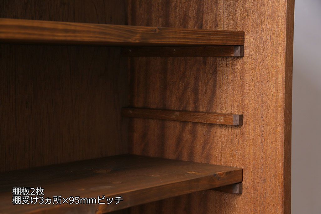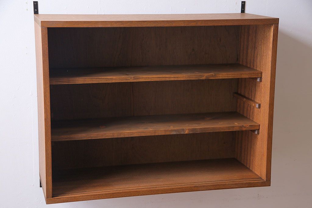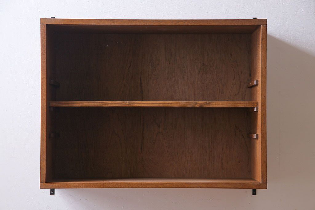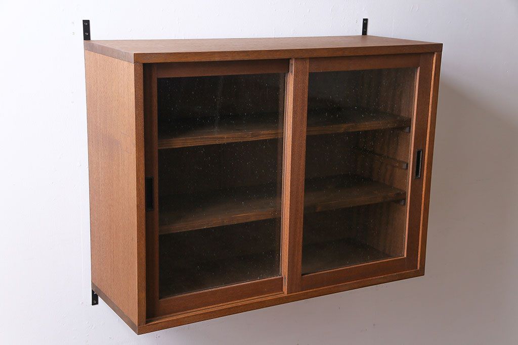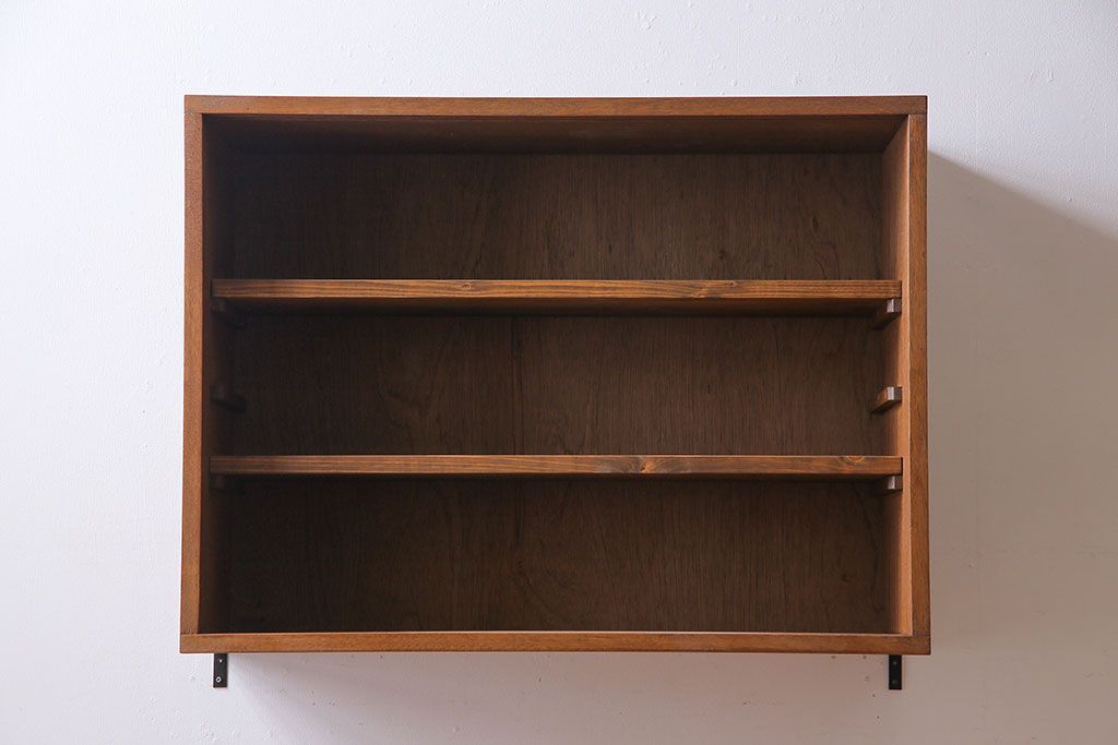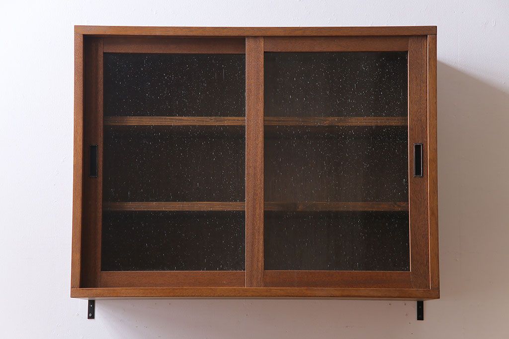 ラフジュ工房> キャビネット・戸棚> ウォールキャビネット > ラフジュ工房オリジナル 気泡ガラス入り 古材を活かしたウォールシェルフ(ウォールキャビネット、壁掛け収納棚、戸棚)
