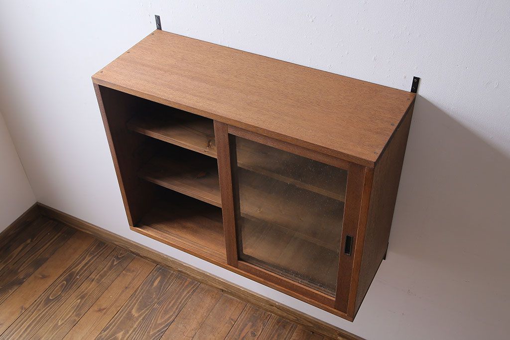 ラフジュ工房> キャビネット・戸棚 > ラフジュ工房オリジナル 気泡ガラス入り 古材を活かしたウォールシェルフ(ウォールキャビネット、壁掛け収納棚、戸棚)