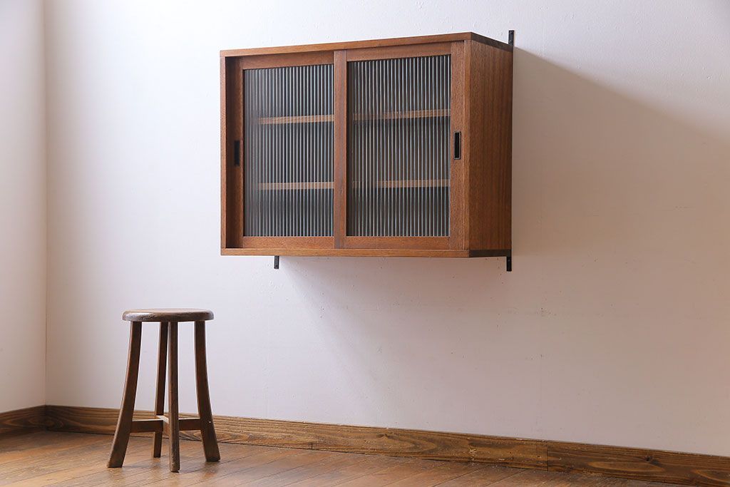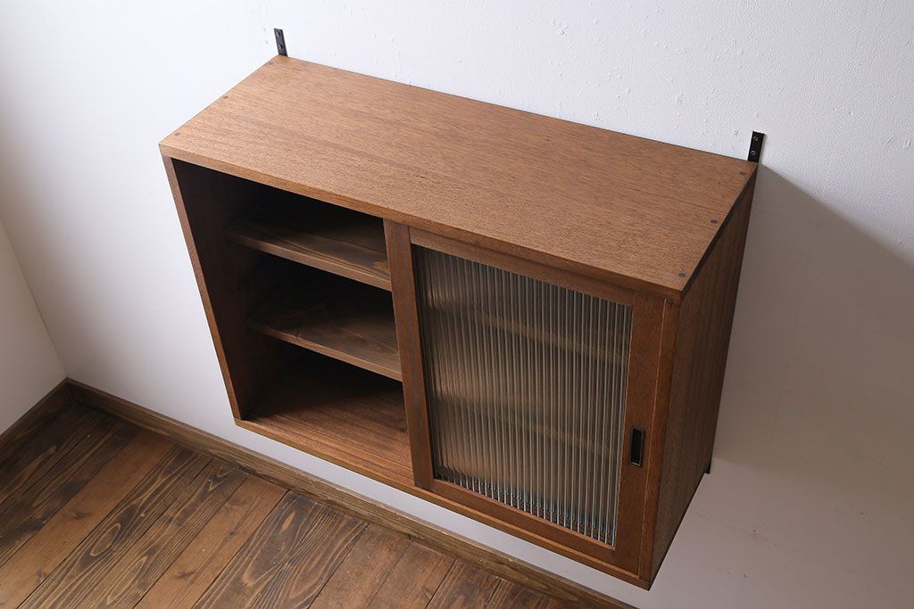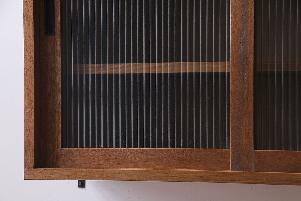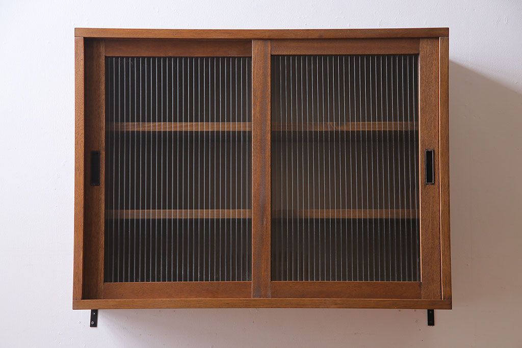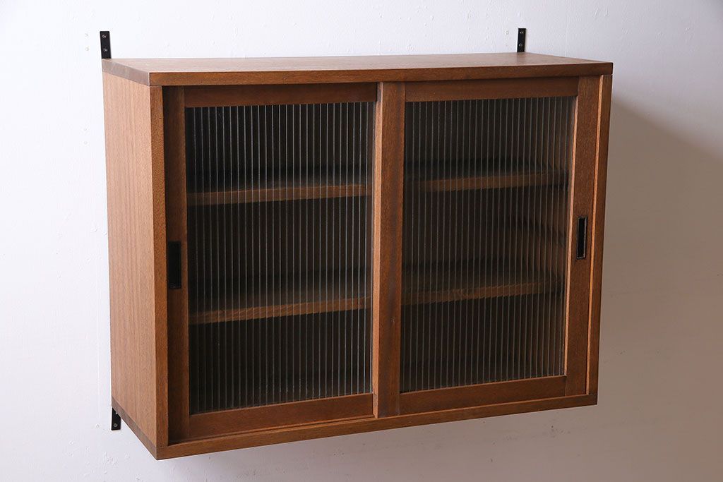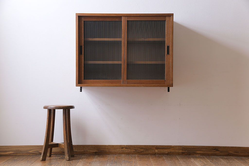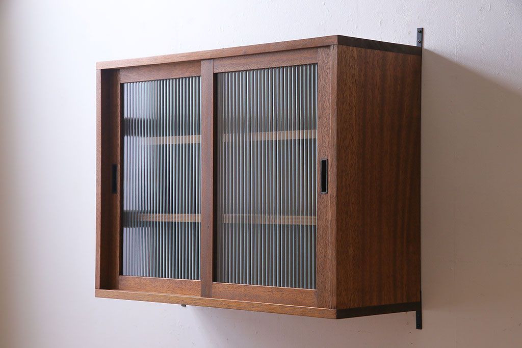 ラフジュ工房> キャビネット・戸棚 > ラフジュ工房オリジナル モールガラス入り 古材を活かしたウォールシェルフ(ウォールキャビネット、壁掛け収納棚、戸棚)(1)