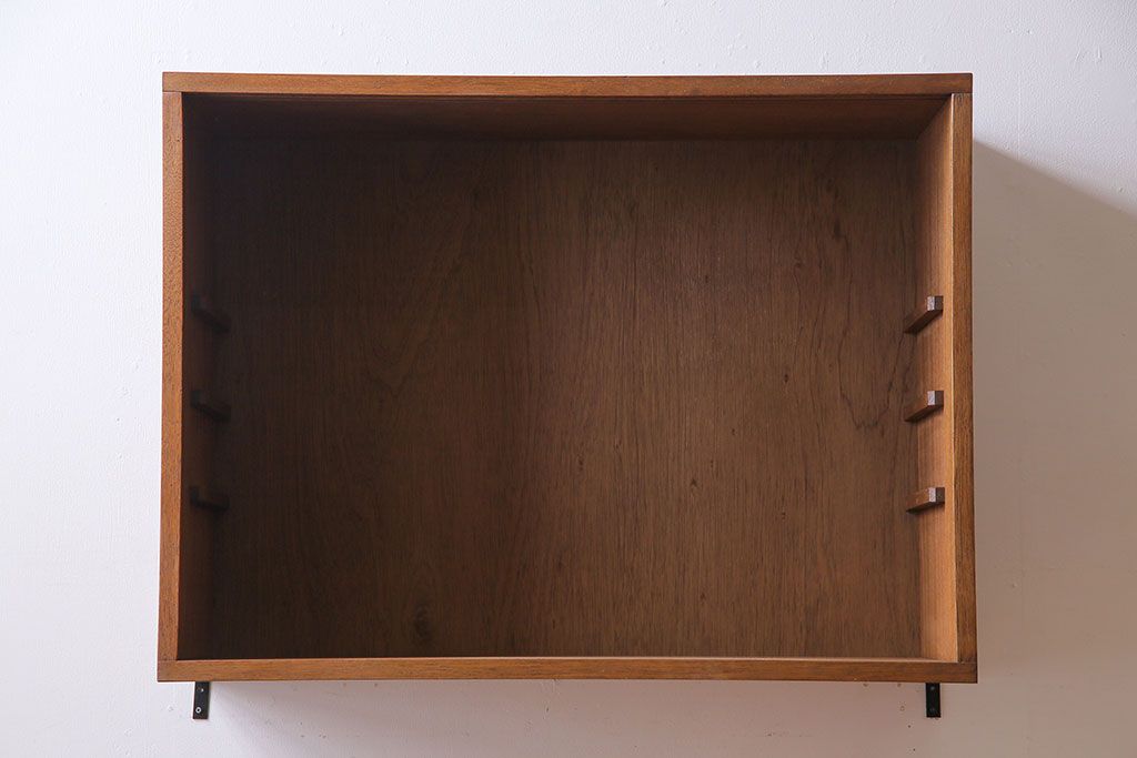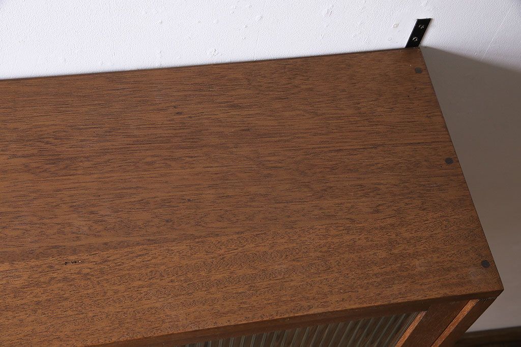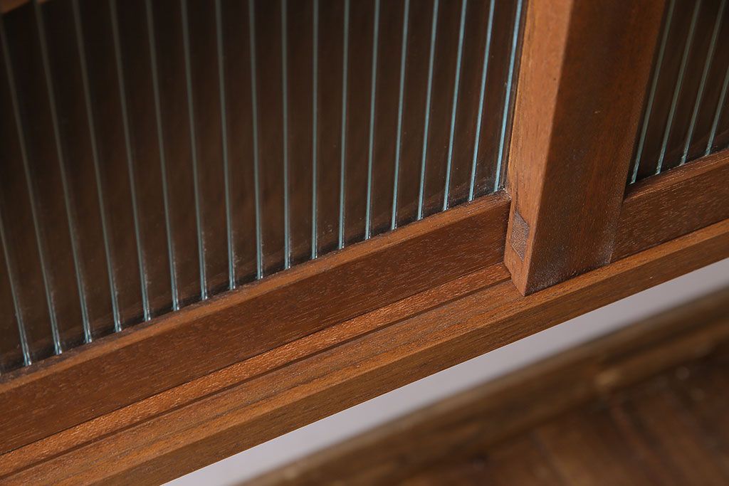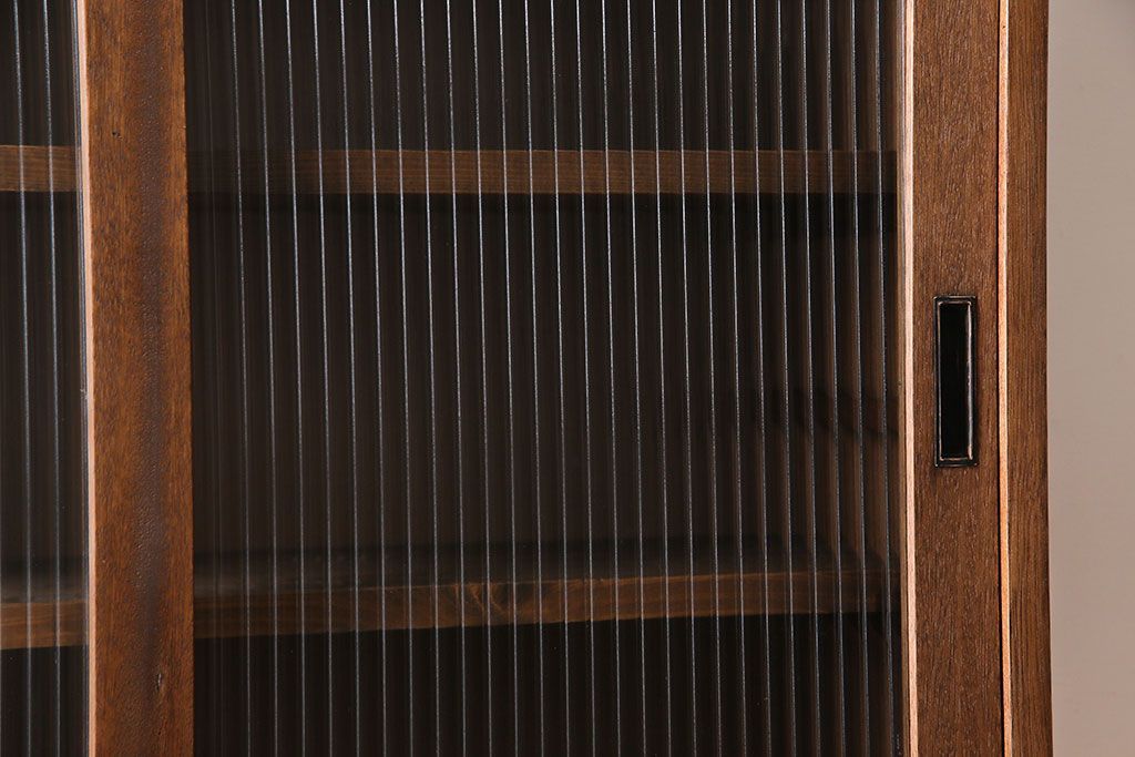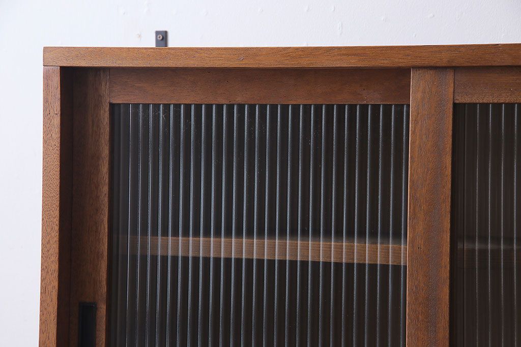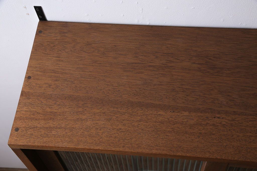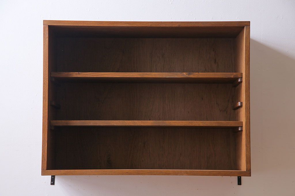ラフジュ工房> キャビネット・戸棚 > ラフジュ工房オリジナル モールガラス入り 古材を活かしたウォールシェルフ(ウォールキャビネット、壁掛け収納棚、戸棚)(1)