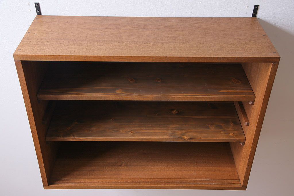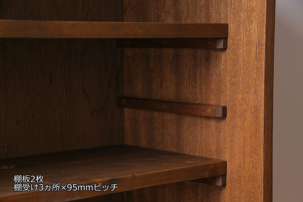 ラフジュ工房オリジナル モールガラス入り 古材を活かしたウォールシェルフ(ウォールキャビネット、壁掛け収納棚、戸棚)(1)
