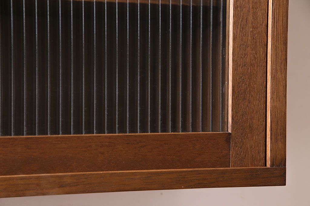 ラフジュ工房> キャビネット・戸棚> ウォールキャビネット > ラフジュ工房オリジナル モールガラス入り 古材を活かしたウォールシェルフ(ウォールキャビネット、壁掛け収納棚、戸棚)(1)