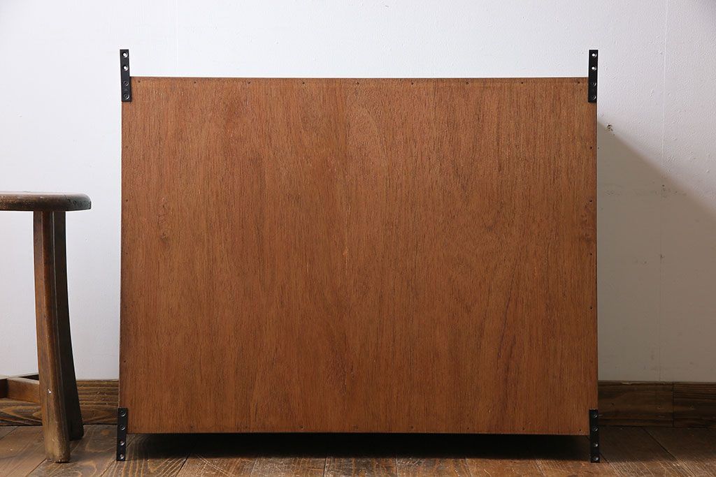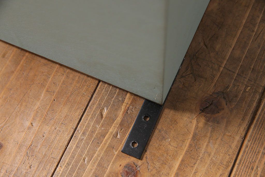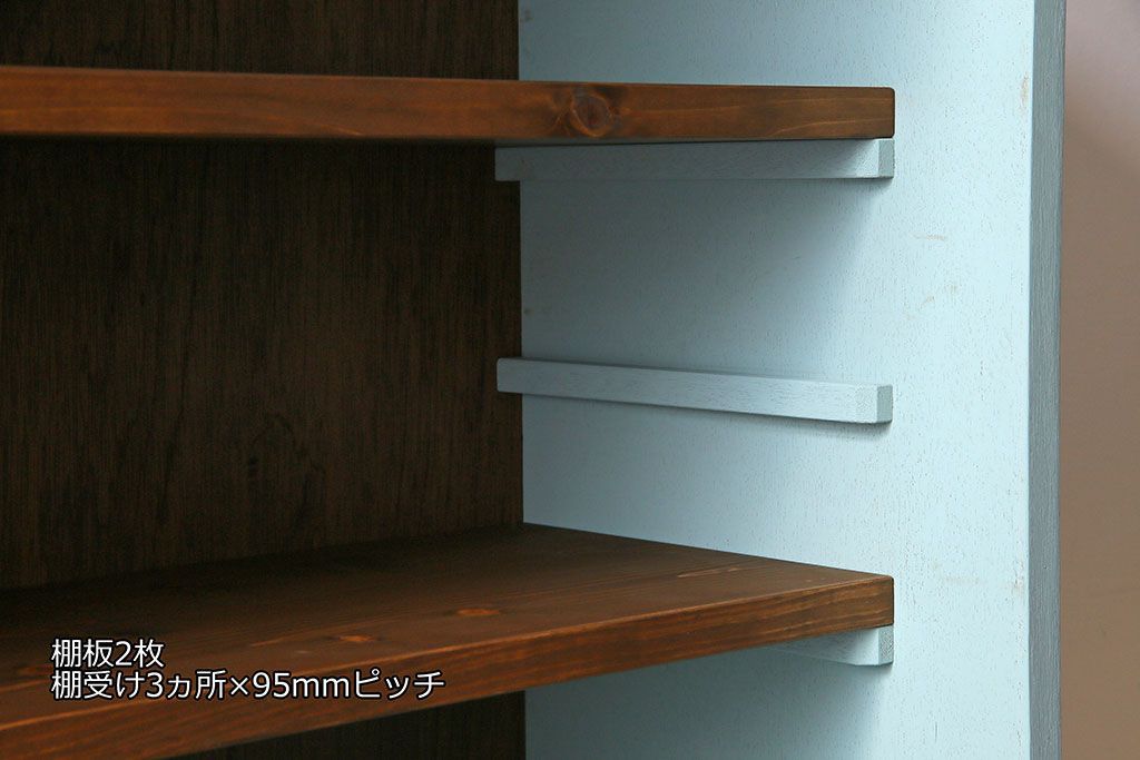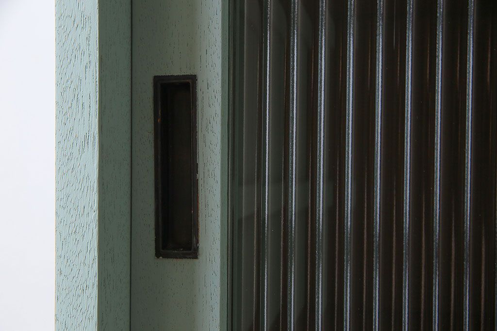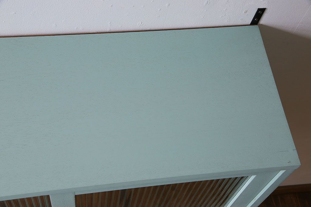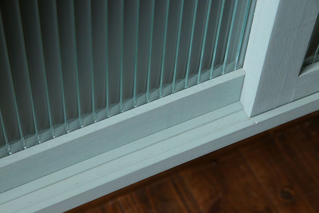 ラフジュ工房> キャビネット・戸棚 > ラフジュ工房オリジナル モールガラス入り 淡いグリーンペイントのウォールシェルフ(ウォールキャビネット、壁掛け収納棚、戸棚)
