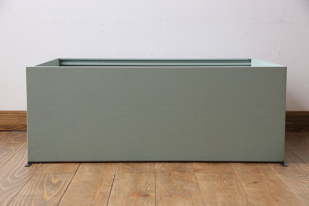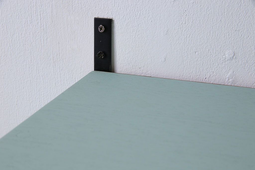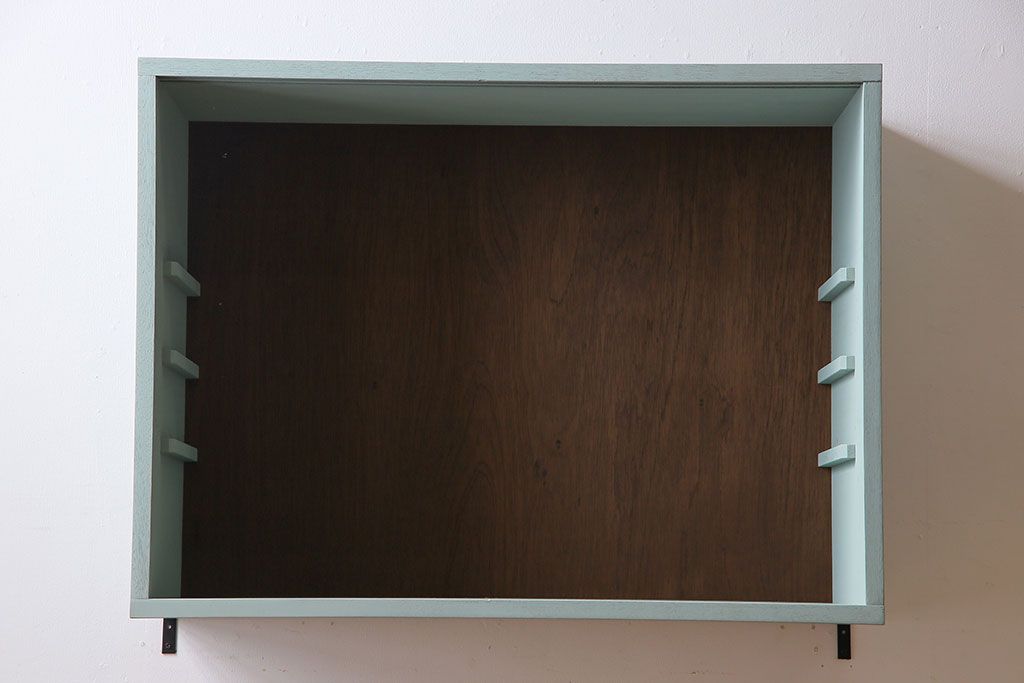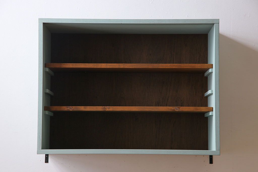 ラフジュ工房オリジナル モールガラス入り 淡いグリーンペイントのウォールシェルフ(ウォールキャビネット、壁掛け収納棚、戸棚)