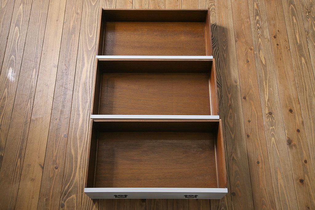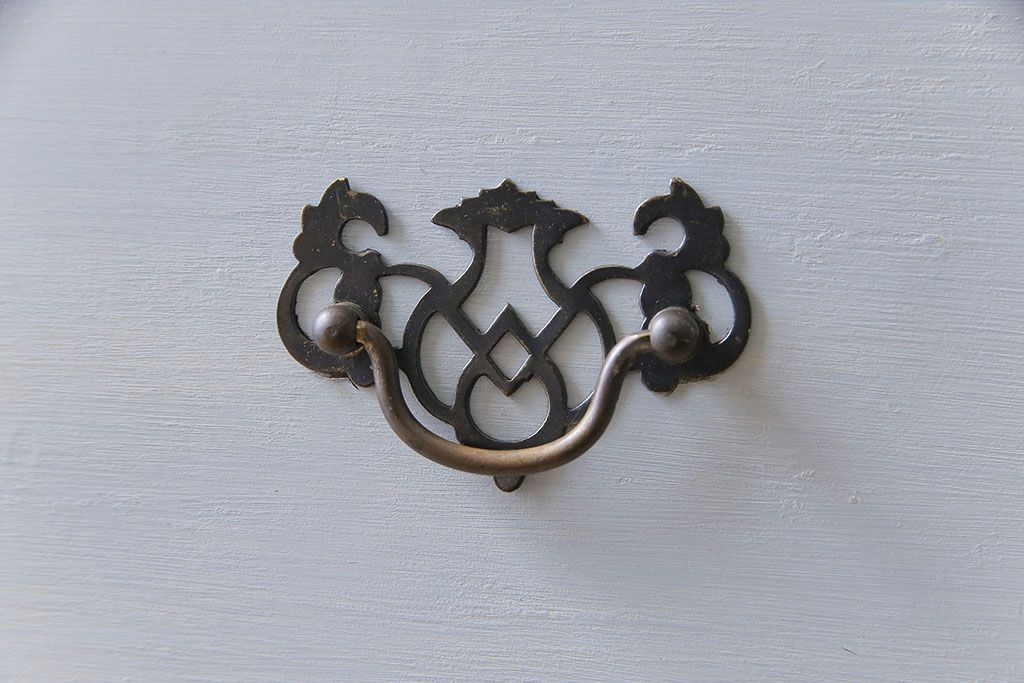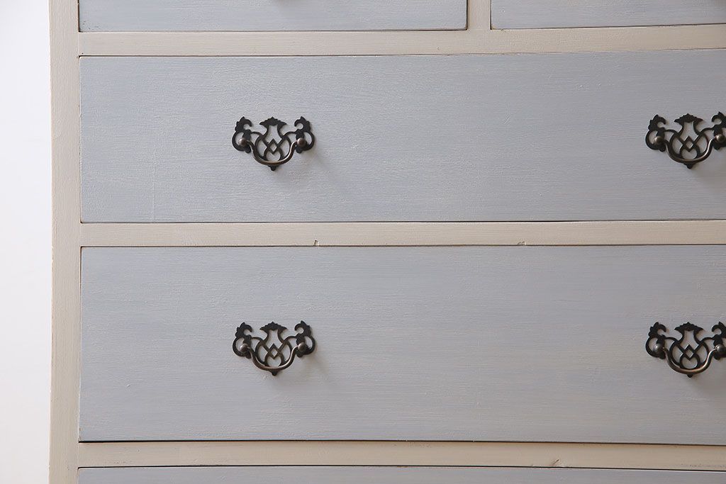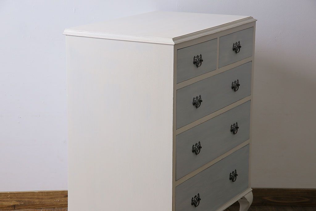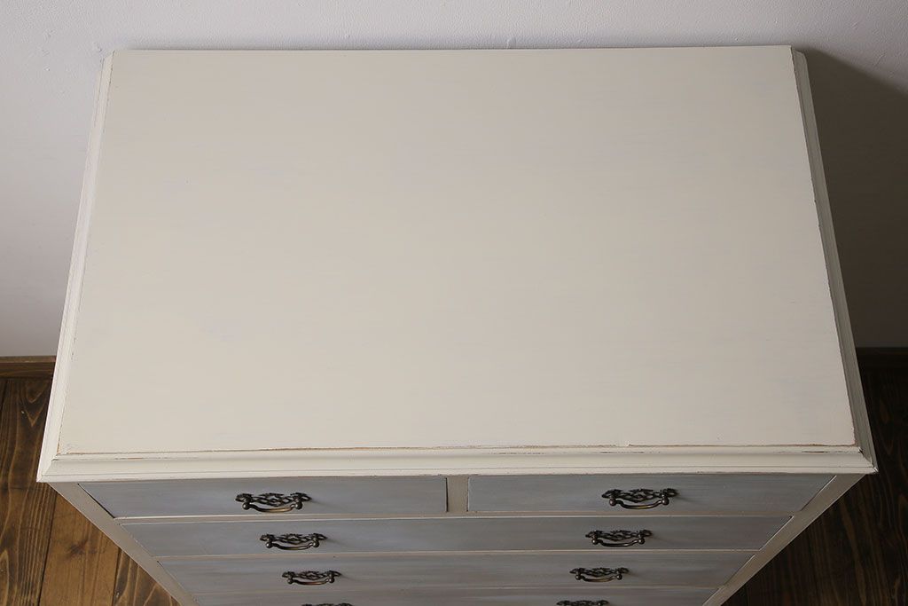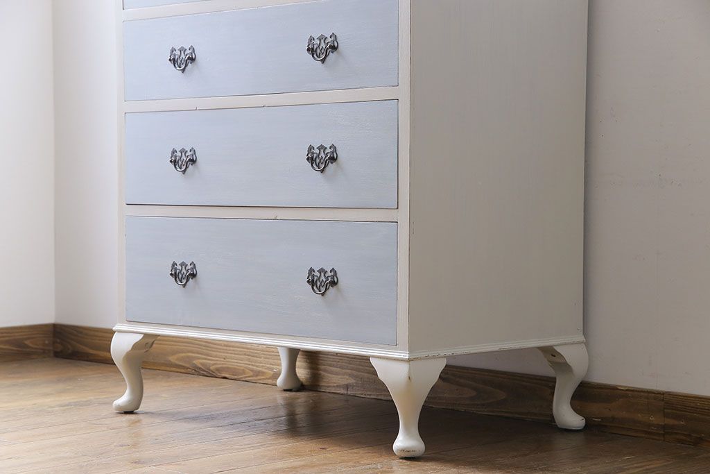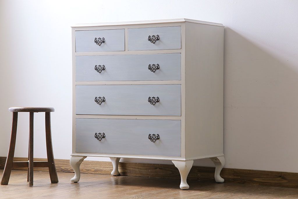 アンティーク家具 イギリスアンティーク 淡い色合いと上品なデザインが魅力のペイントチェスト(サイドチェスト、引き出し)