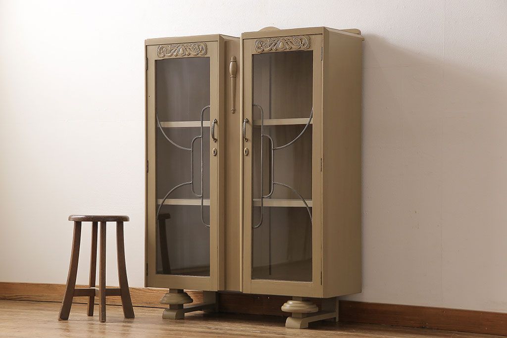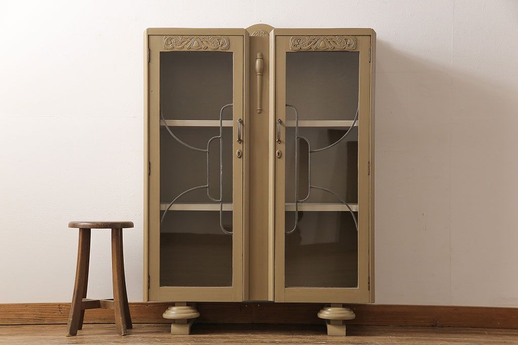 アンティーク家具 イギリスアンティーク あたたかな色合いが魅力的なペイントブックケース(本箱、キャビネット、収納棚)