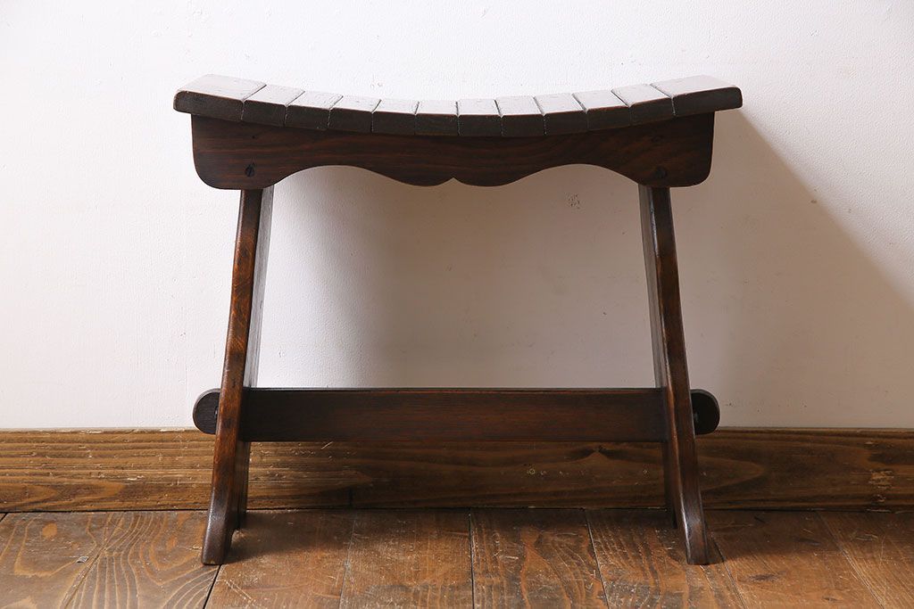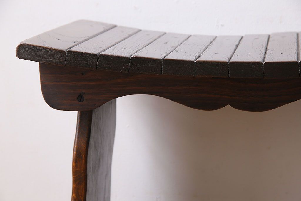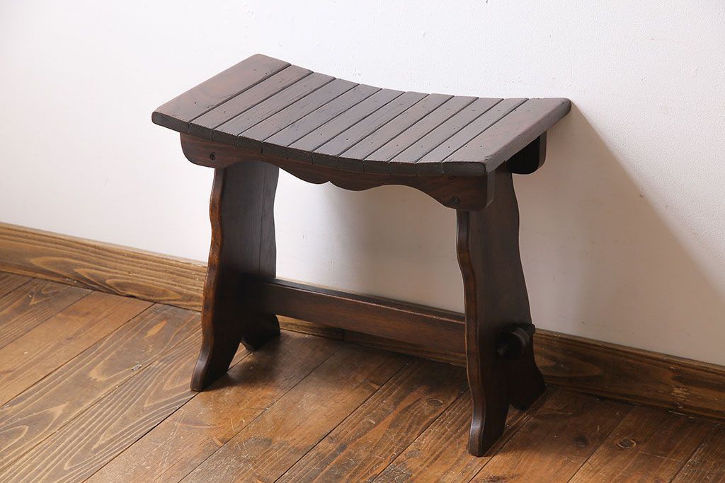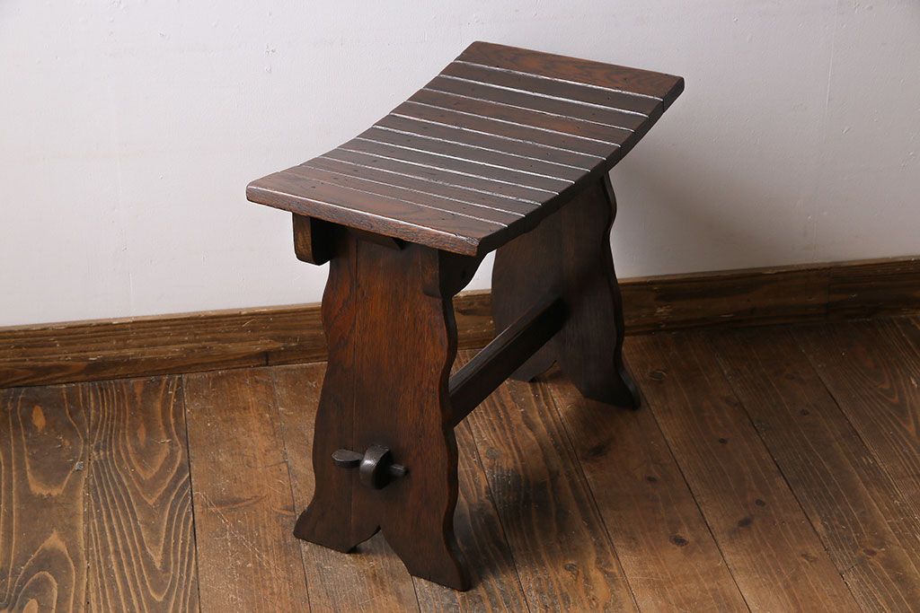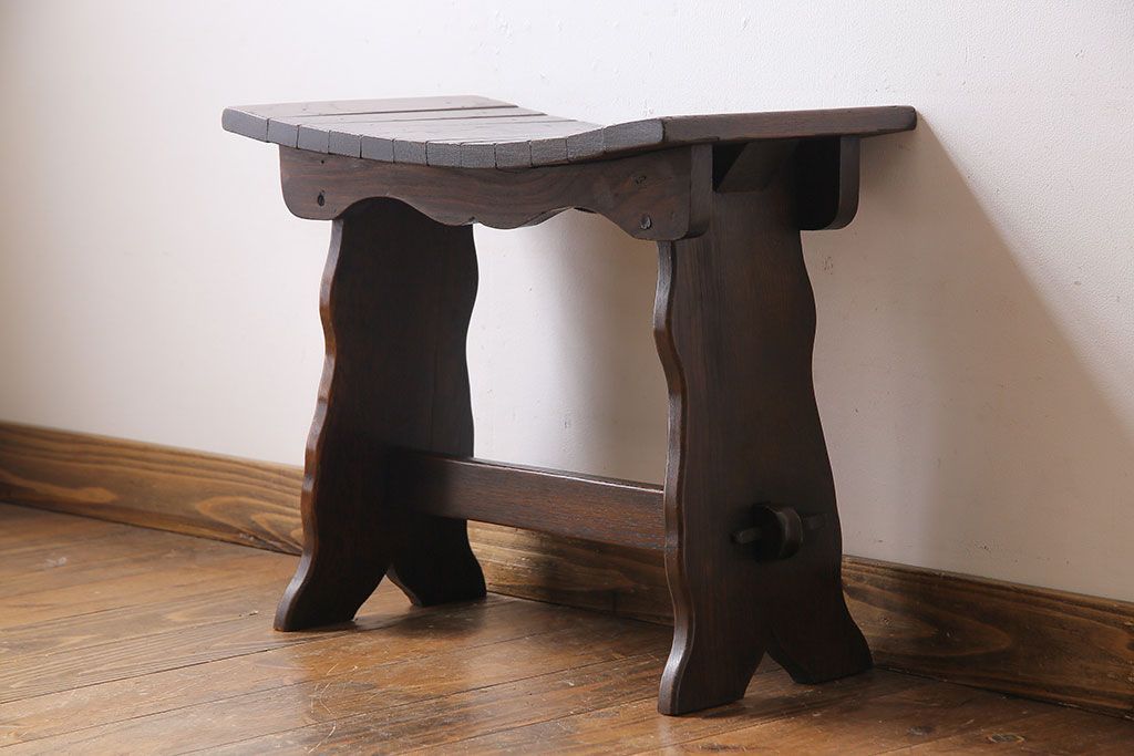 アンティーク家具 イギリスアンティーク オーク材 曲線のデザインが素敵なスツール(椅子、チェア)