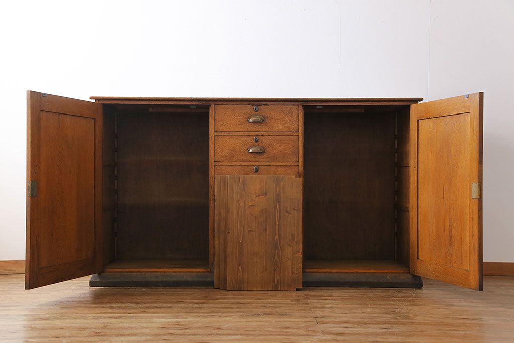 アンティーク家具 イギリスアンティーク 使い込まれた質感が味わい深い大型サイドボード(カウンターキャビネット、サイドチェスト、戸棚)