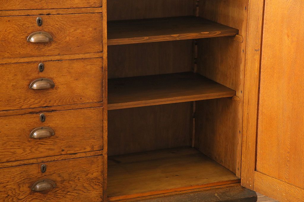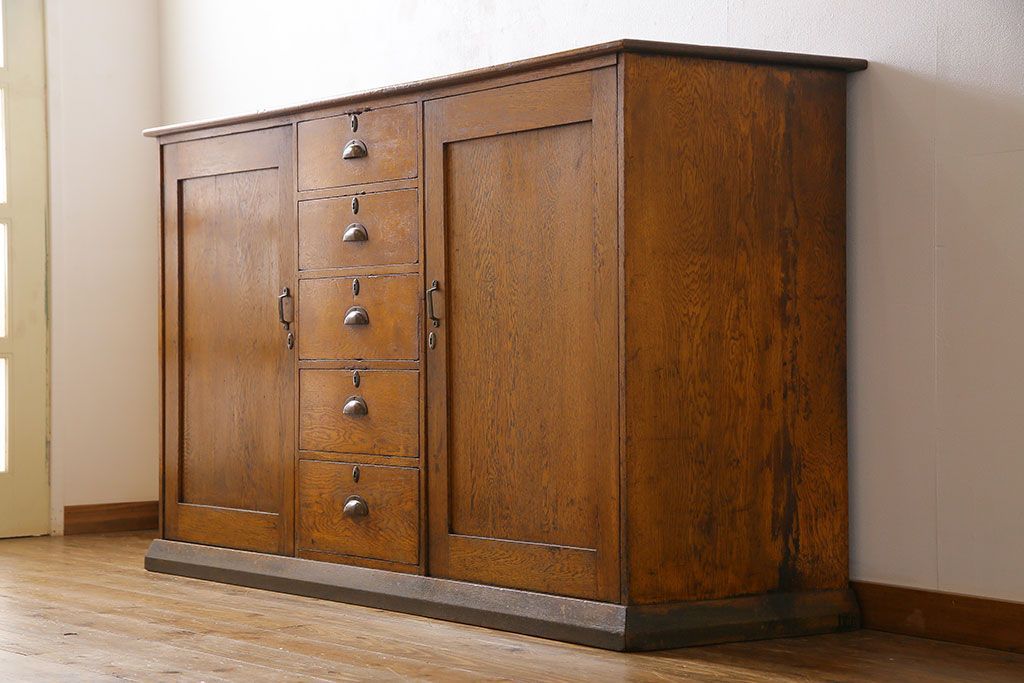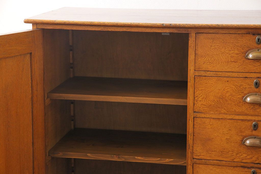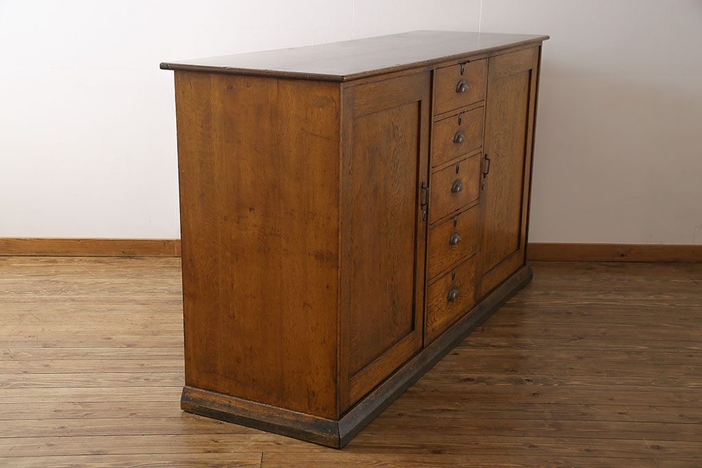ラフジュ工房> キャビネット・戸棚 > アンティーク家具 イギリスアンティーク 使い込まれた質感が味わい深い大型サイドボード(カウンターキャビネット、サイドチェスト、戸棚)