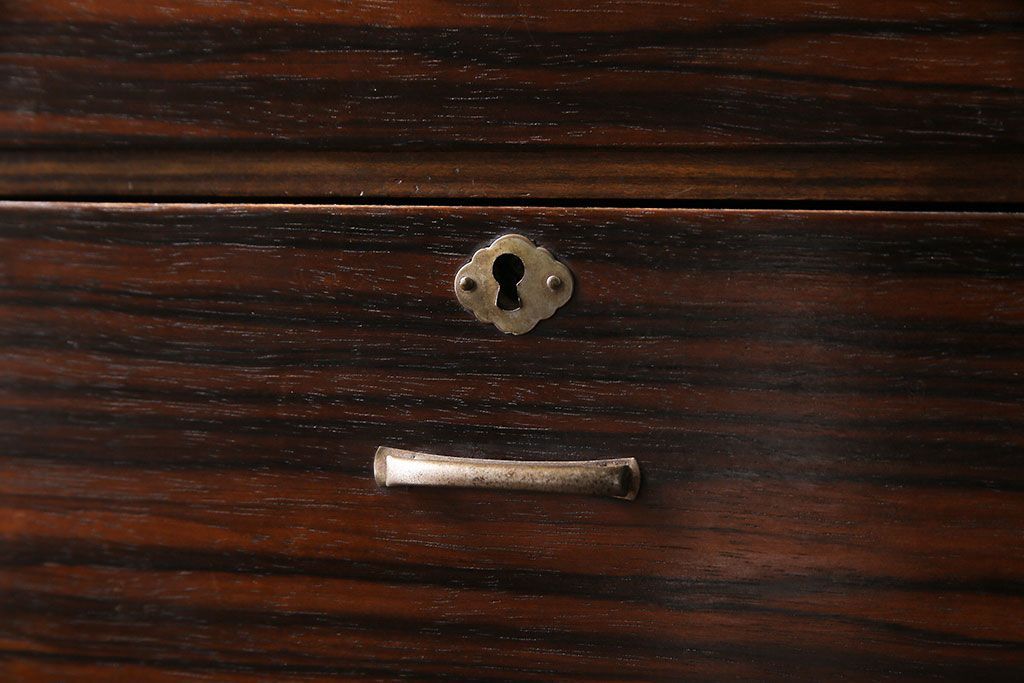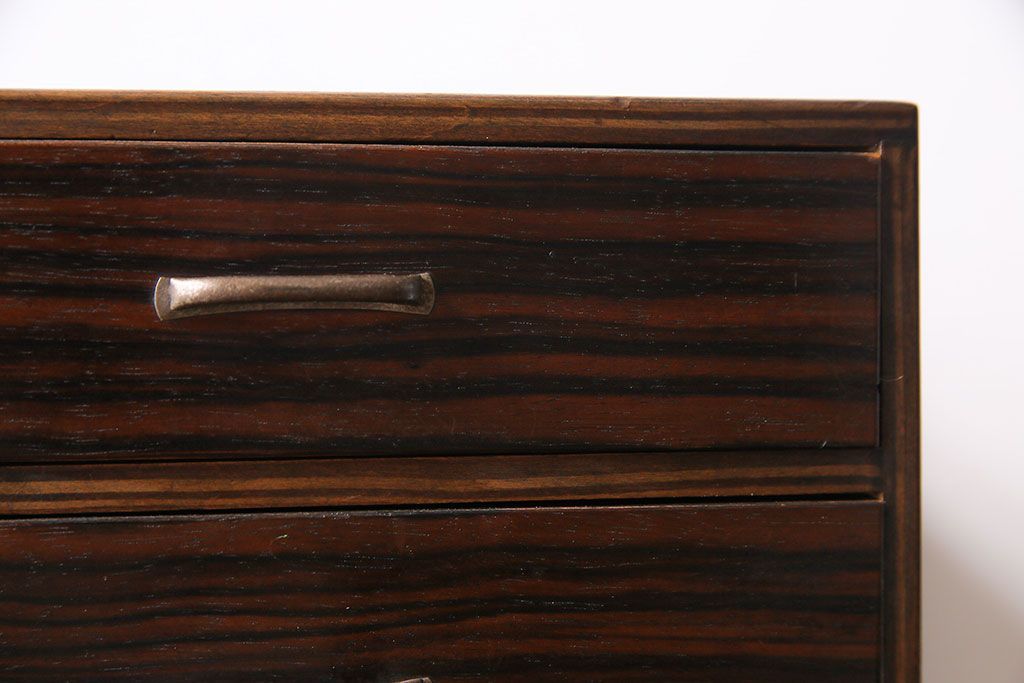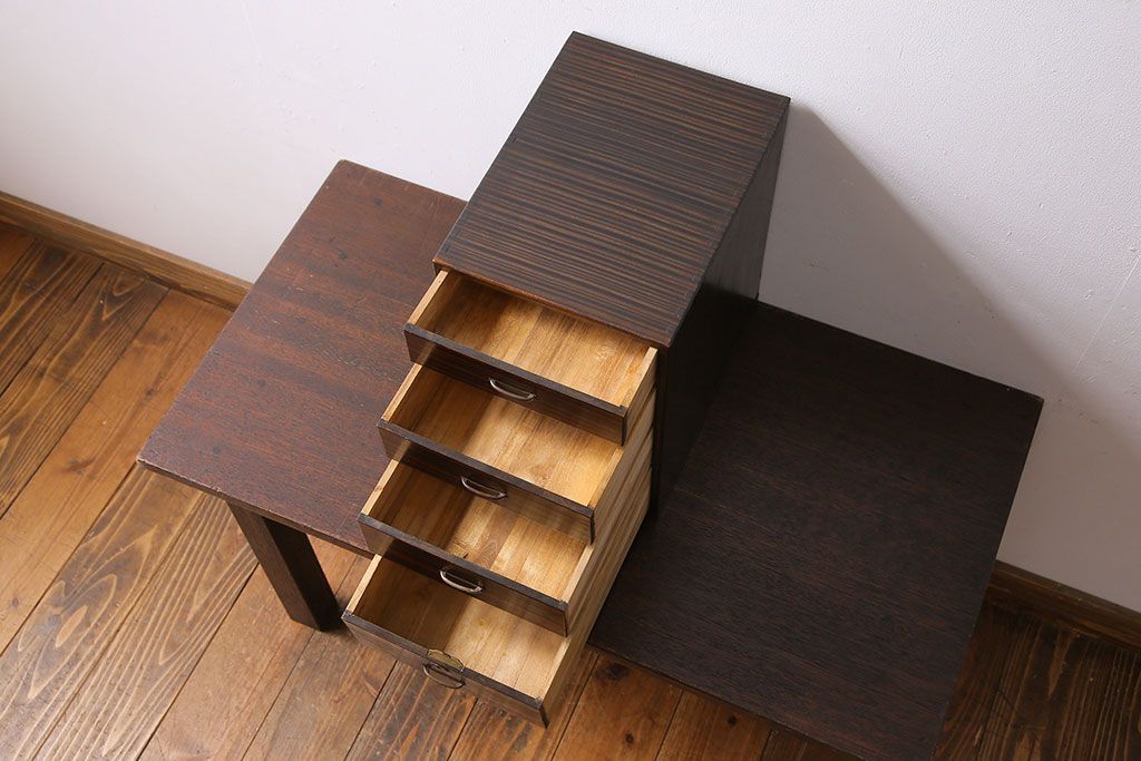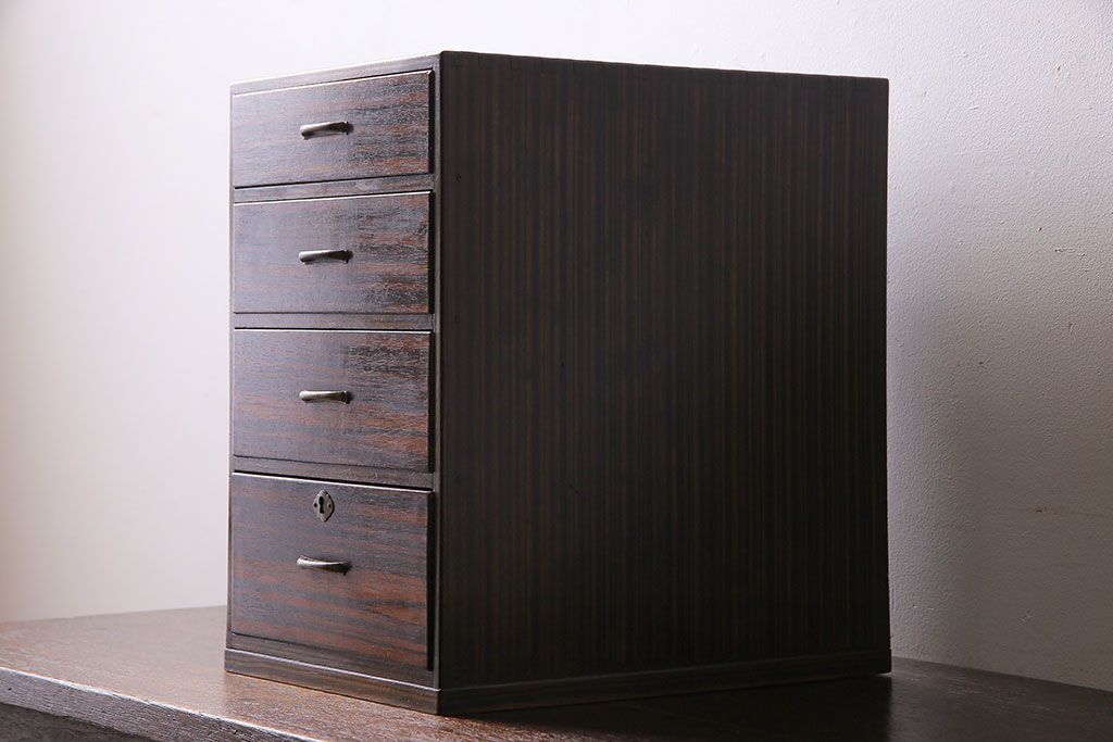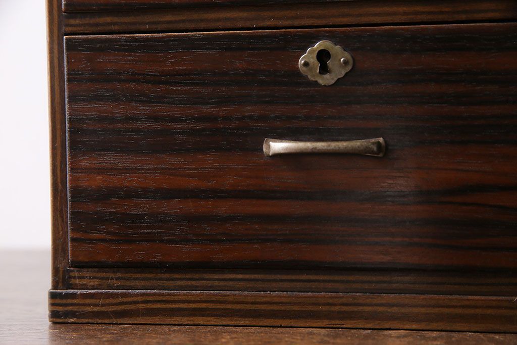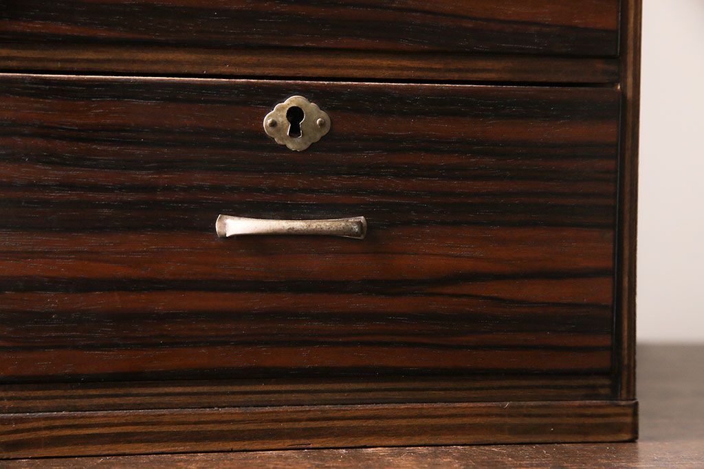 アンティーク家具 昭和初期 黒檀 味わい深い模様張りの小引き出し(引き出し)