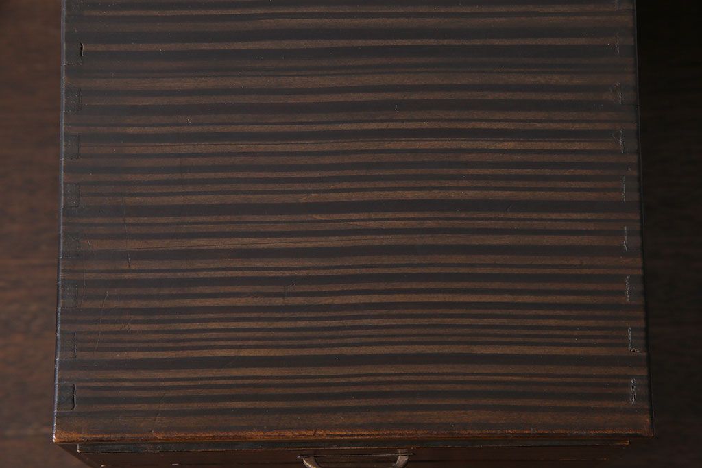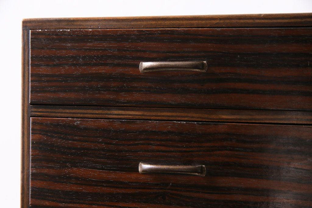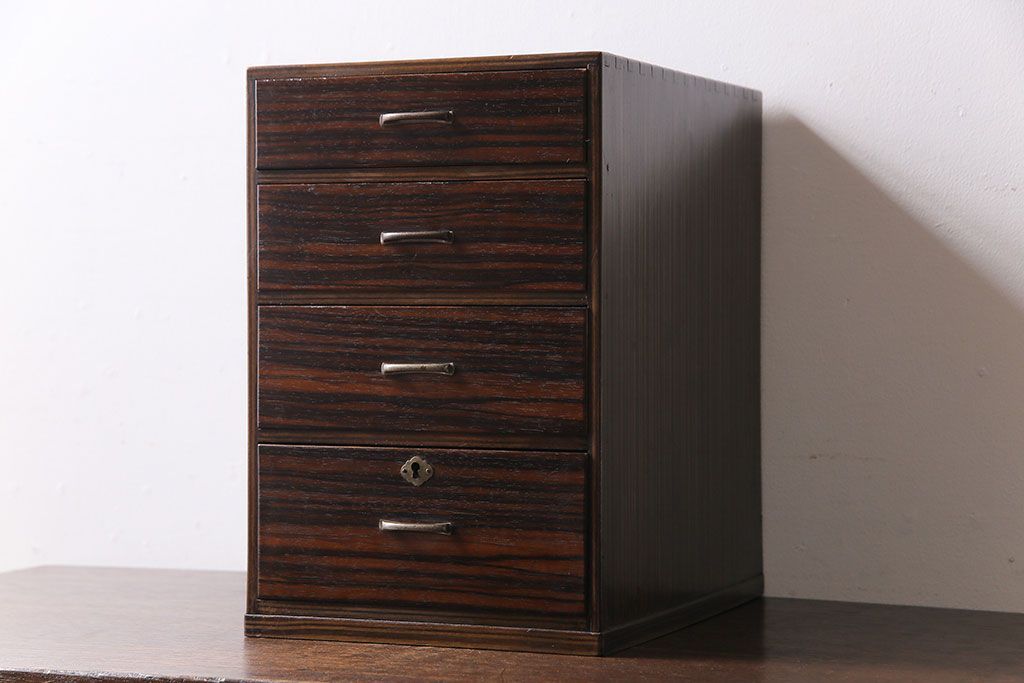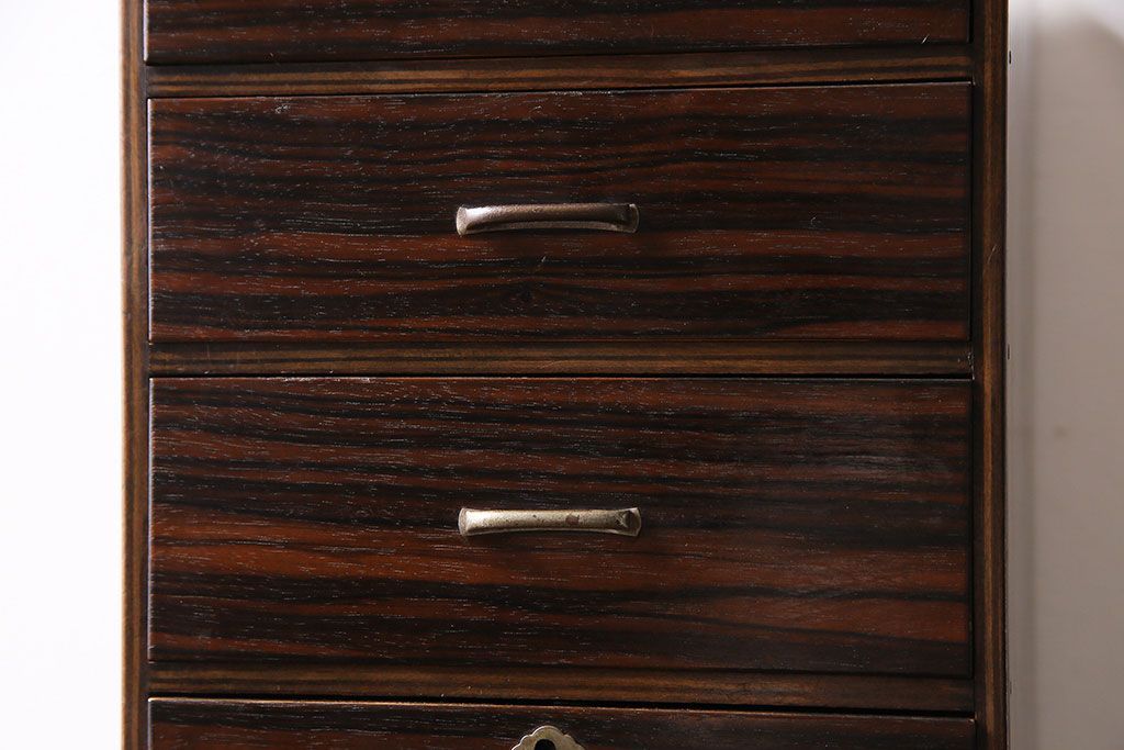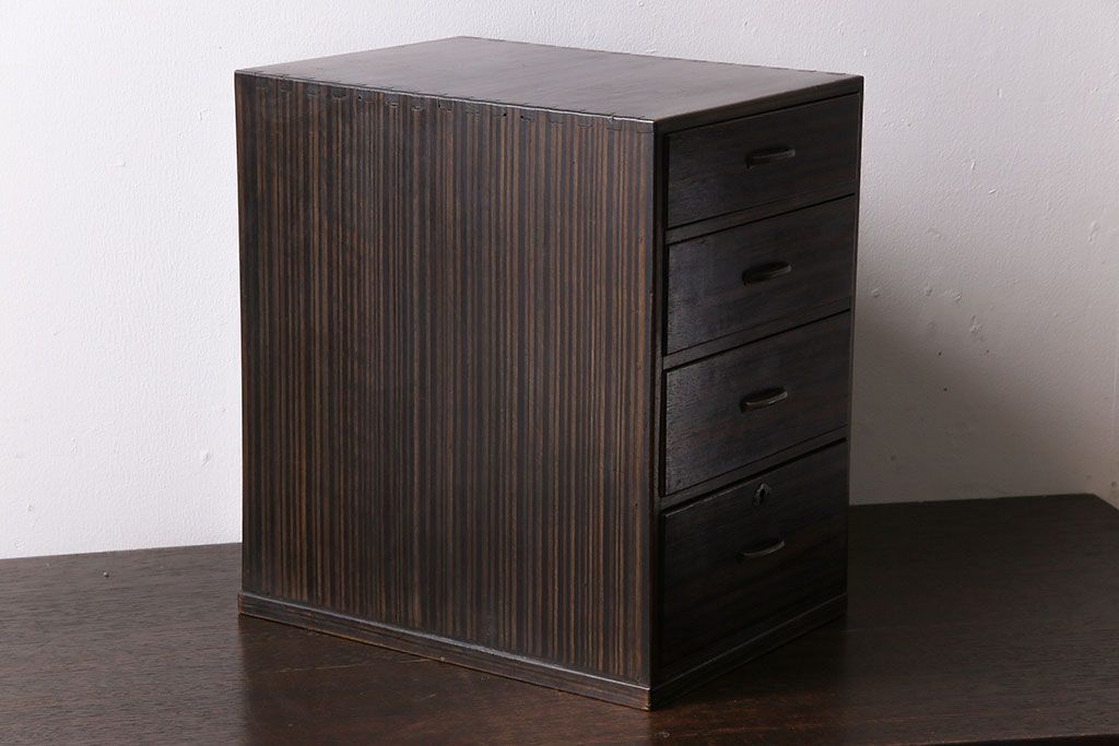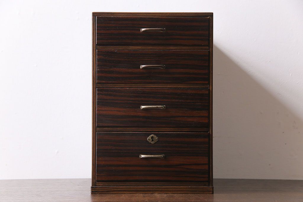 アンティーク家具 昭和初期 黒檀 味わい深い模様張りの小引き出し(引き出し)