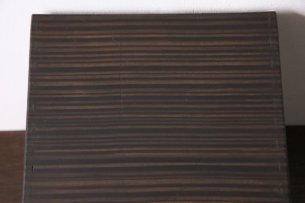 昭和初期 黒檀 味わい深い模様張りの小引き出し(引き出し)です。