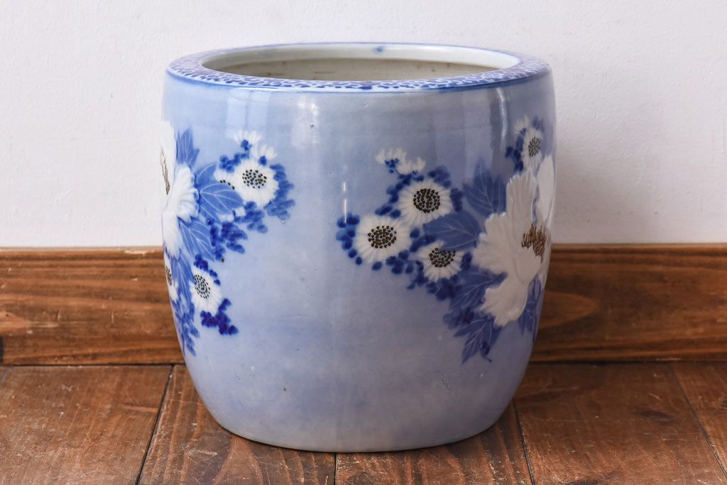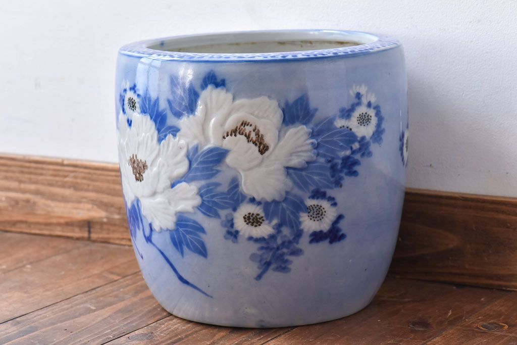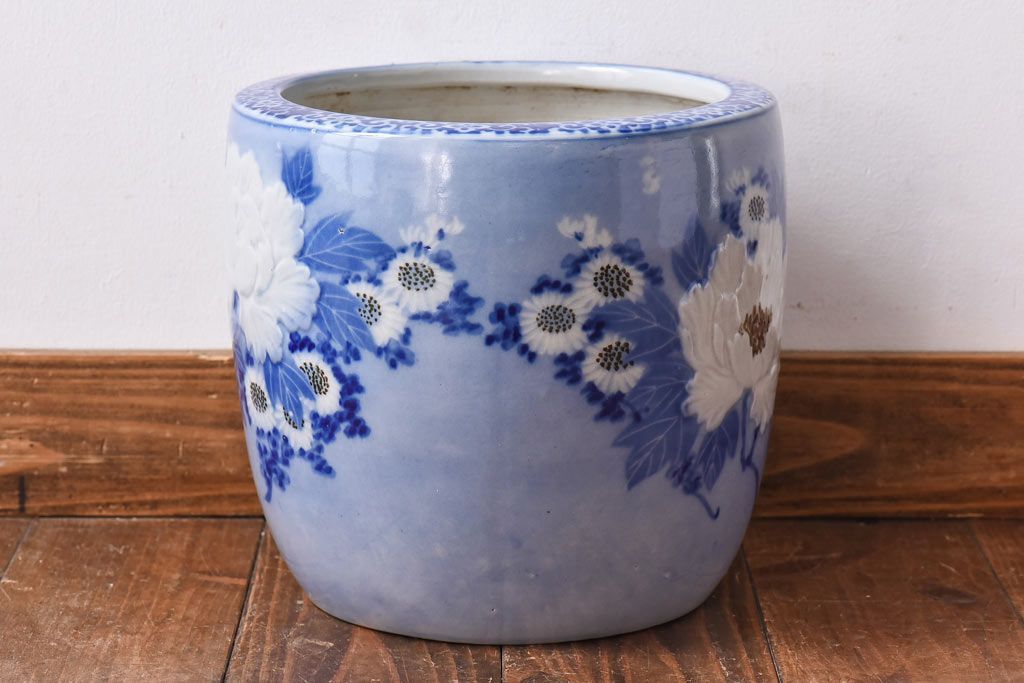アンティーク雑貨 【I様ご成約分】和製アンティーク 牡丹の図 シックな雰囲気漂う瀬戸火鉢(鉢カバー)