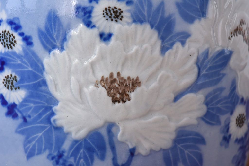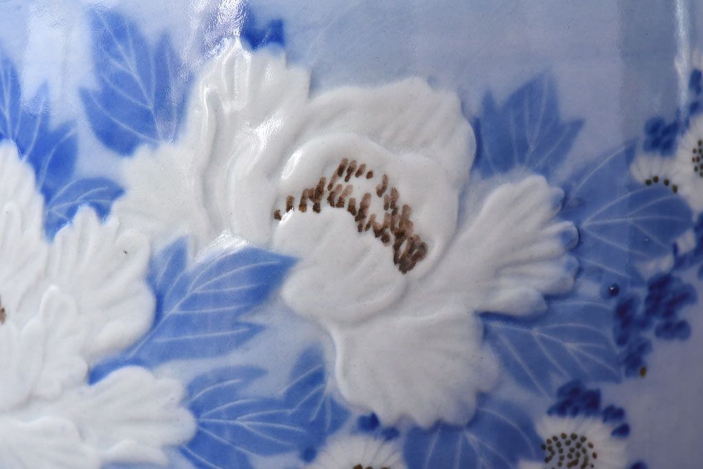 和製アンティーク 牡丹の図 シックな雰囲気漂う瀬戸火鉢(鉢カバー)です。
