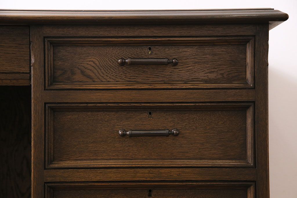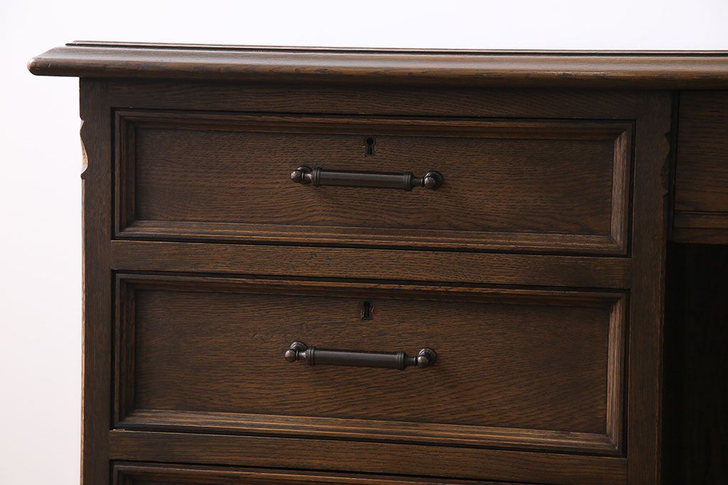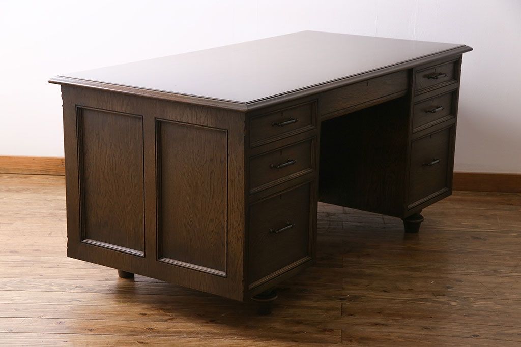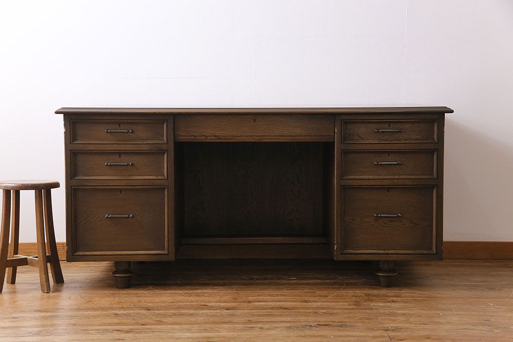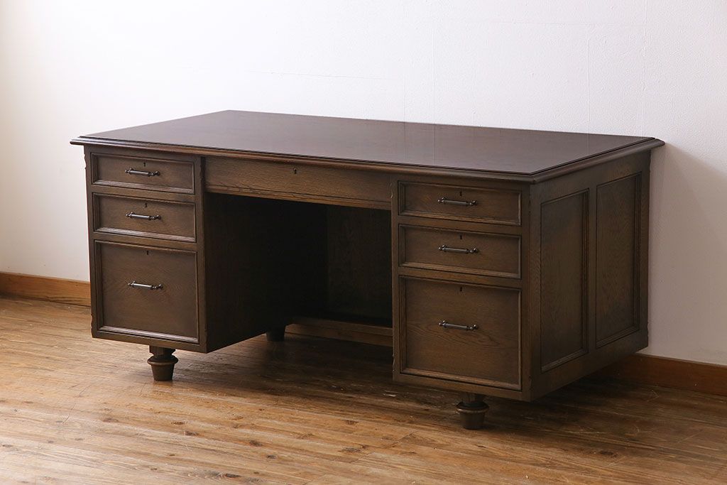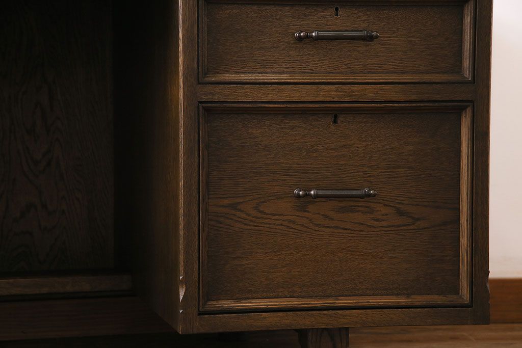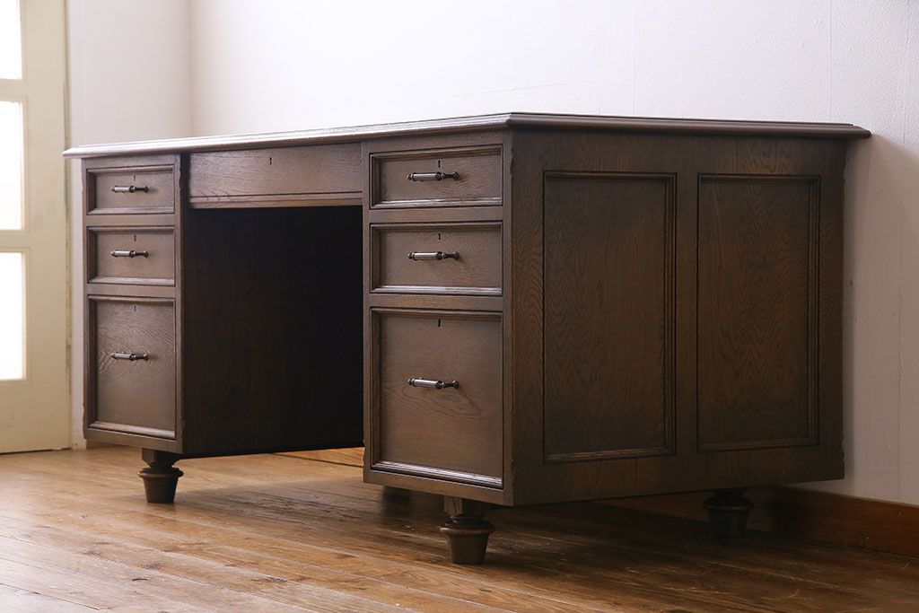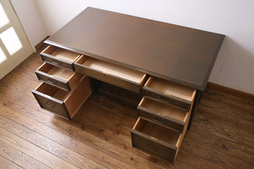 中古 神戸洋家具 永田良介商店 希少品! 優雅な佇まいの両袖デスク(机、在宅ワーク、在宅用ワークデスク)(定価約58万円)