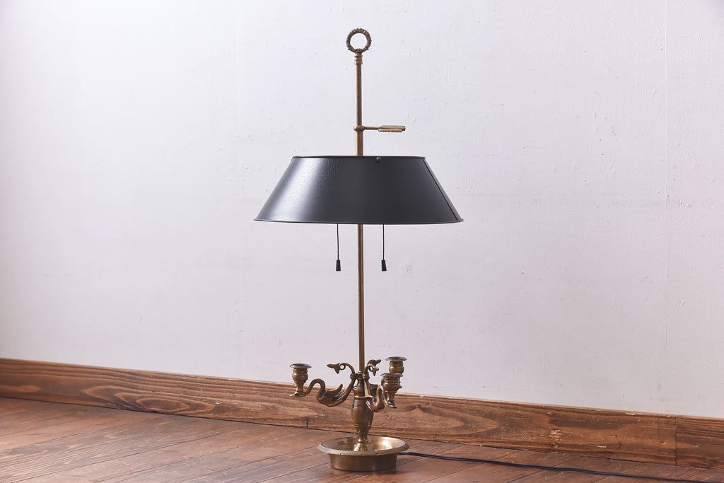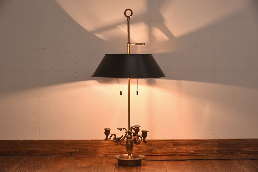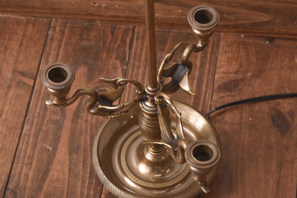 照明・ランプ > アンティーク雑貨 CHAPMAN社 EMPIRE BOUILLOTTE SWAN 真鍮製スタンドライト(デスクライト、照明、ろうそく立て)(定価約12万円)