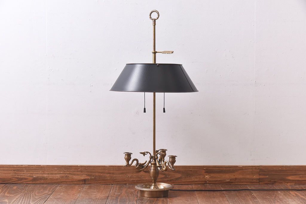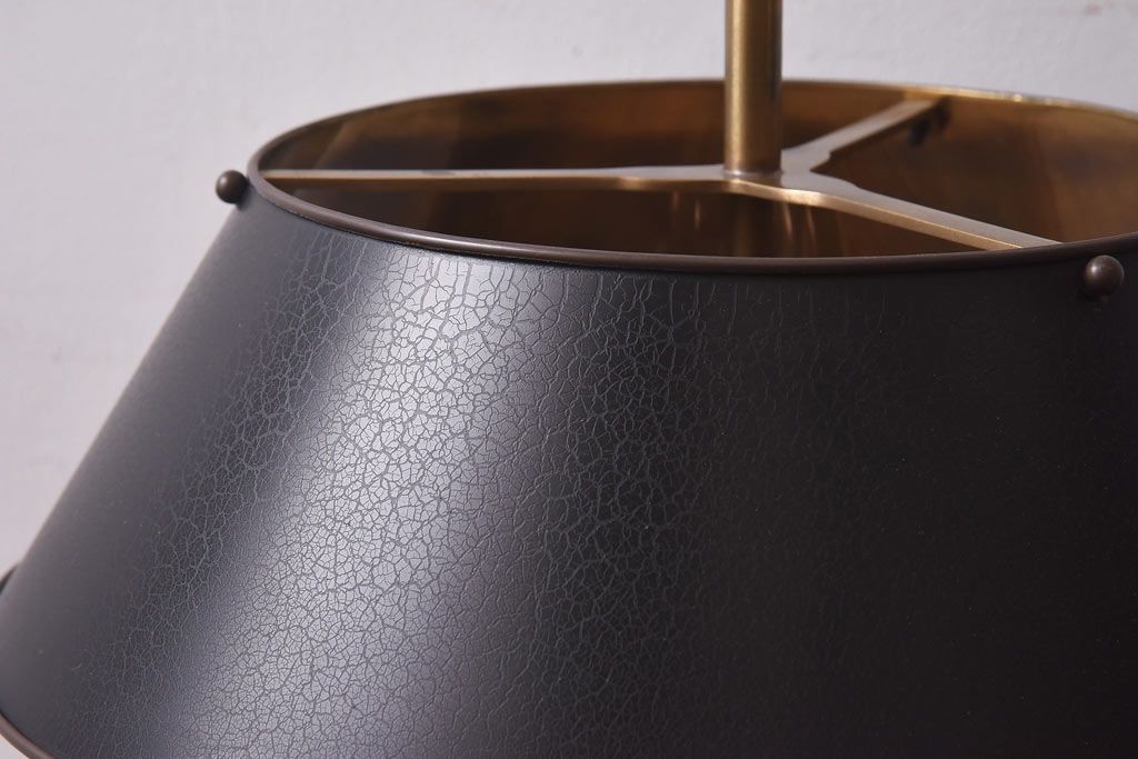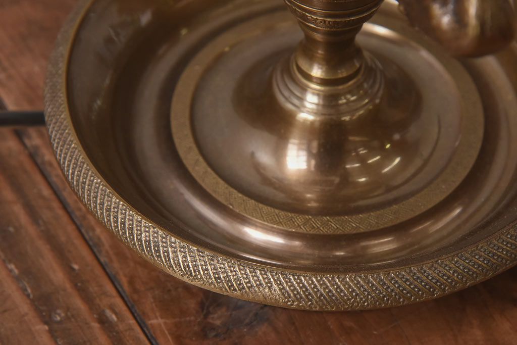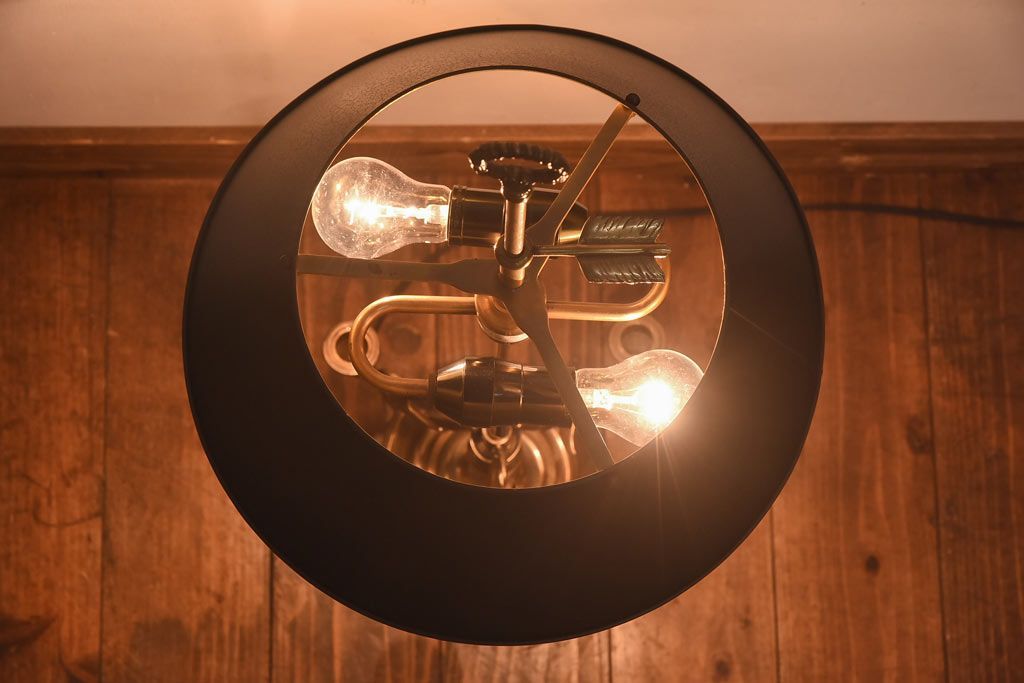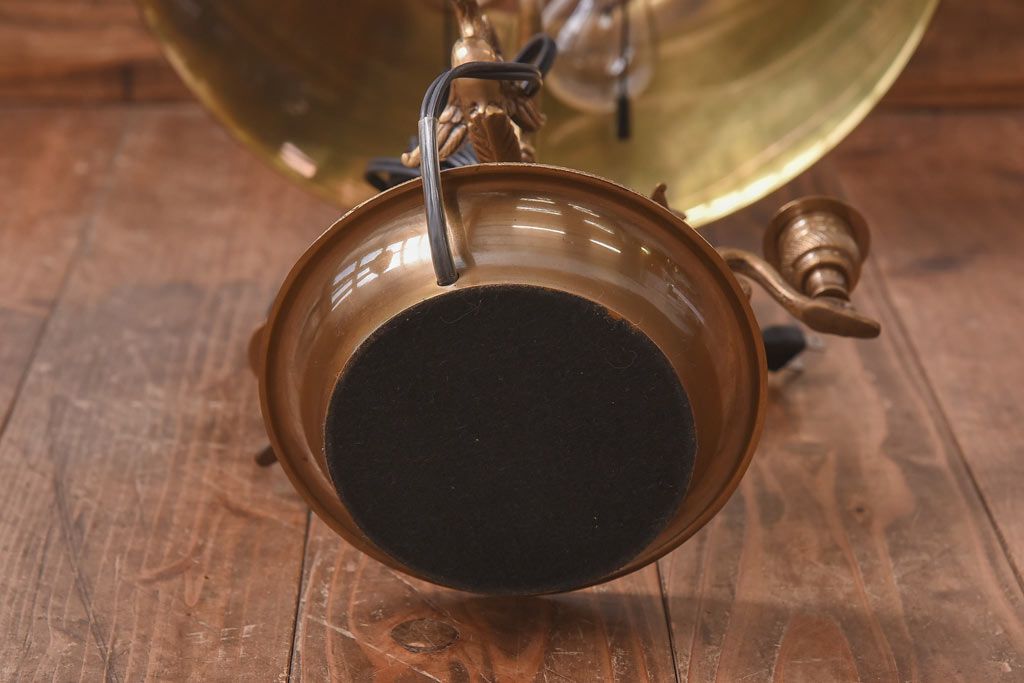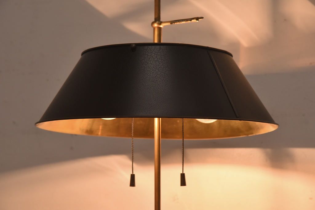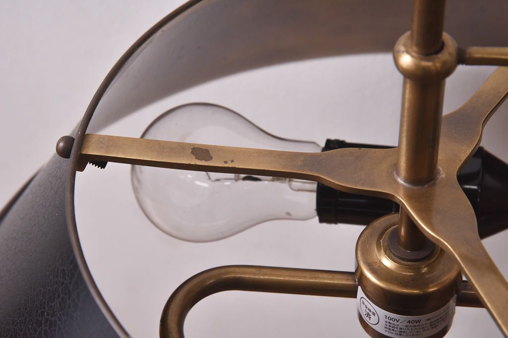 真鍮の鈍い輝きに、黒の笠が良く映える一品で、