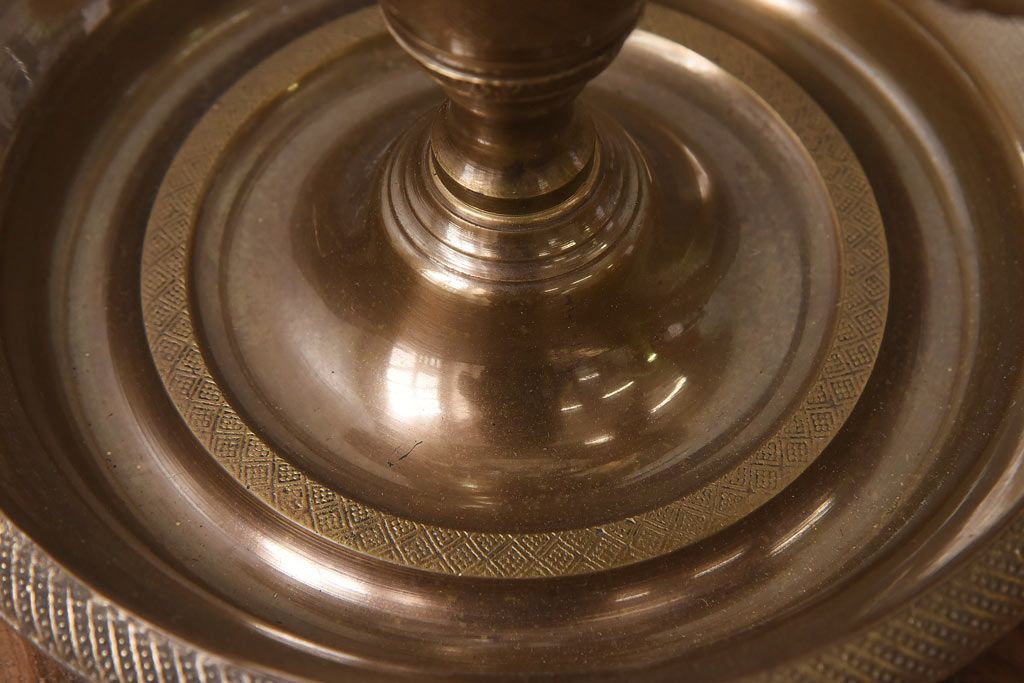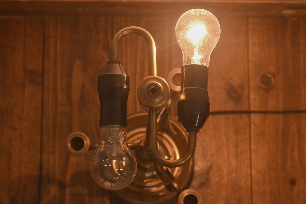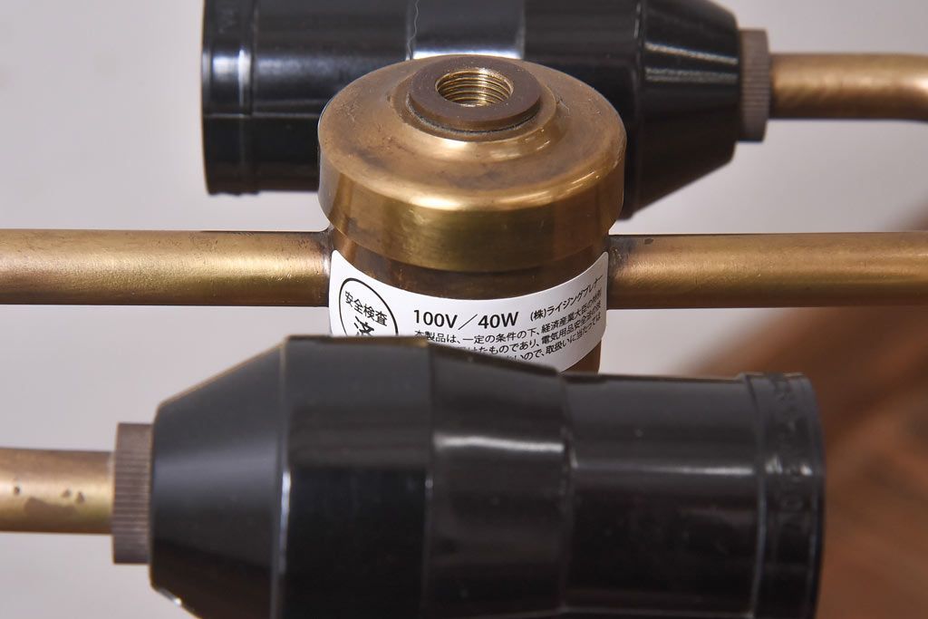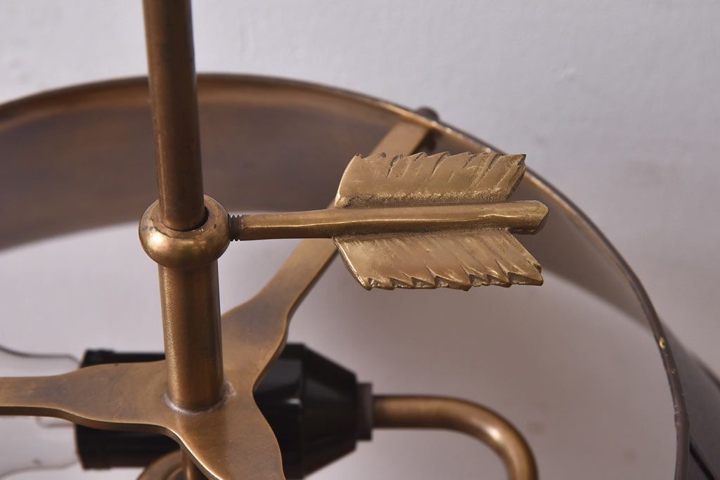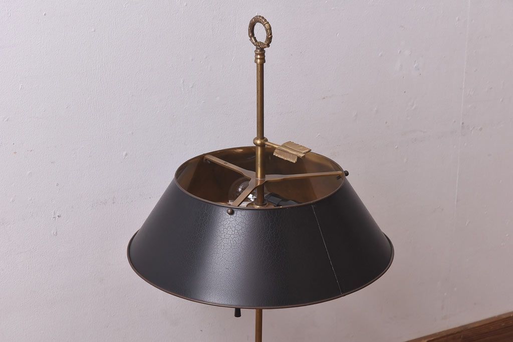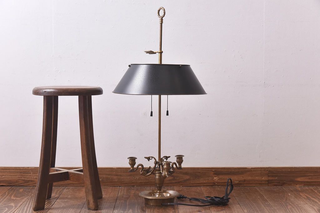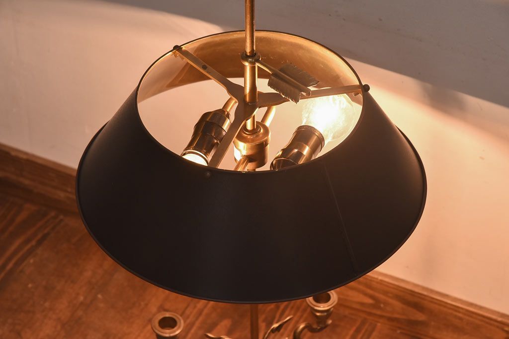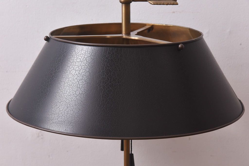 真鍮の鈍い輝きに、黒の笠が良く映える一品で、