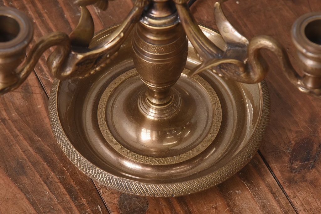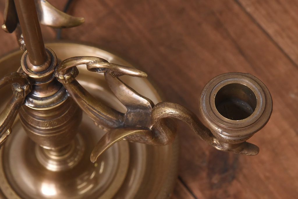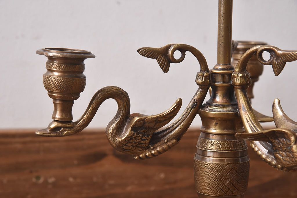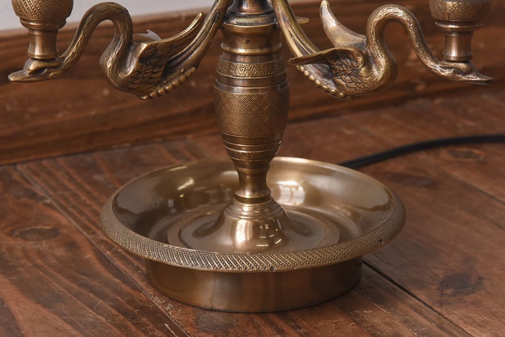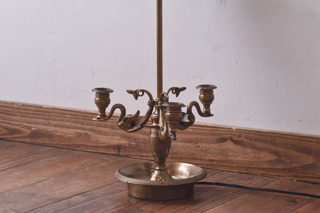 雑貨> ろうそく立て > アンティーク雑貨 CHAPMAN社 EMPIRE BOUILLOTTE SWAN 真鍮製スタンドライト(デスクライト、照明、ろうそく立て)(定価約12万円)