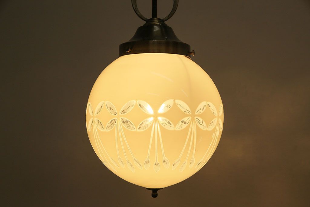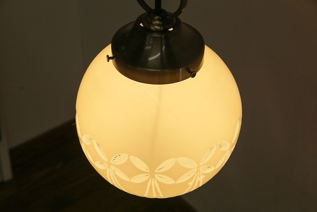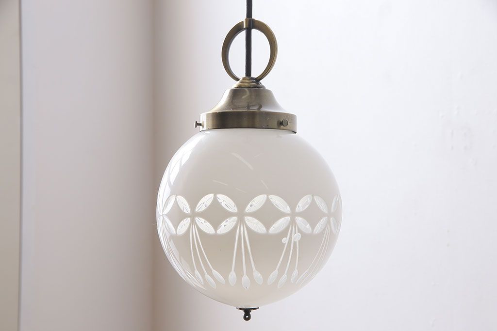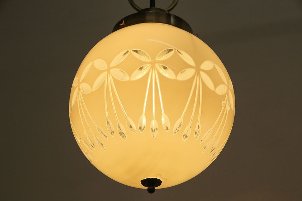 和製アンティーク 球体のシルエットが魅力の切子シェード(天井照明)