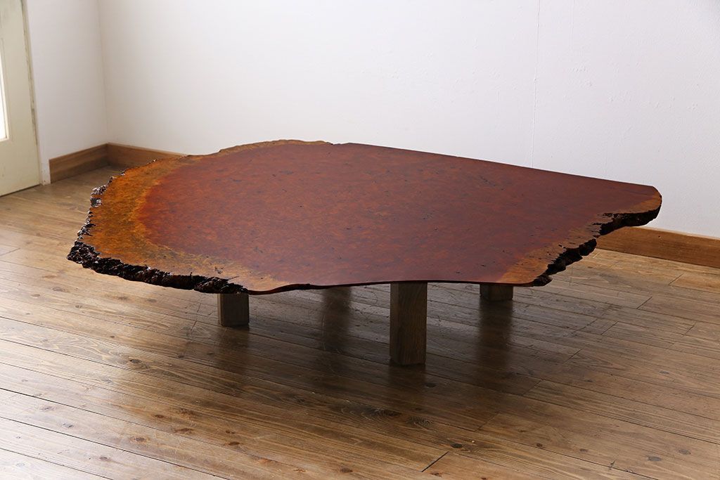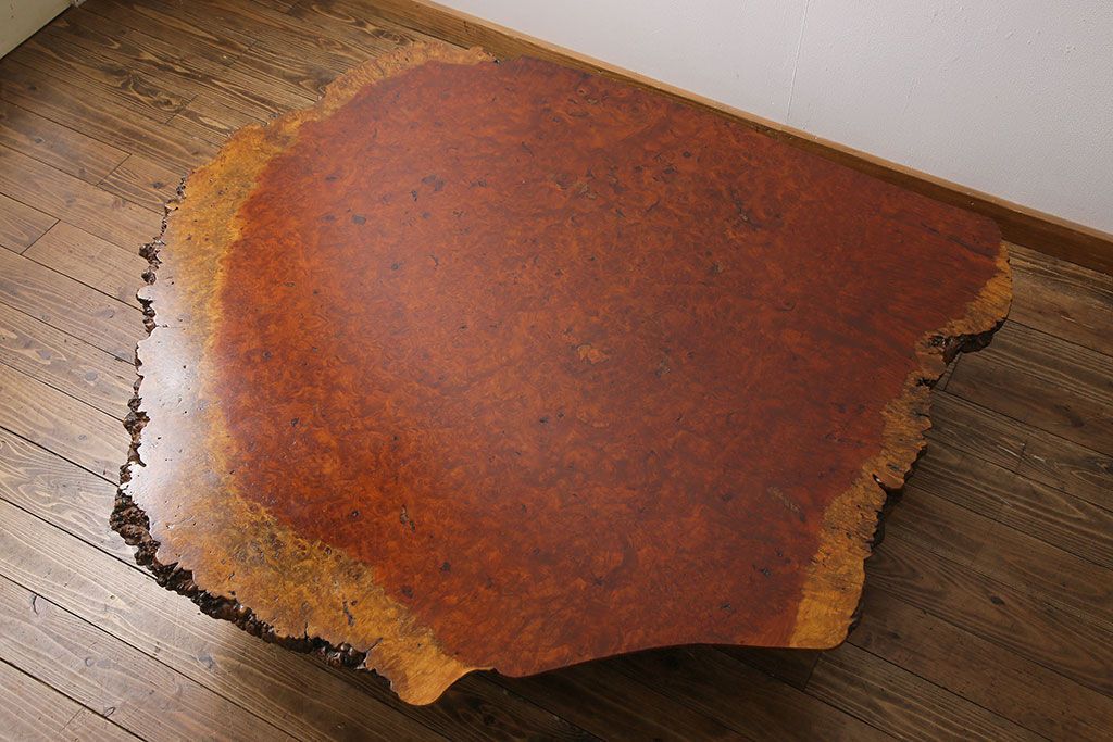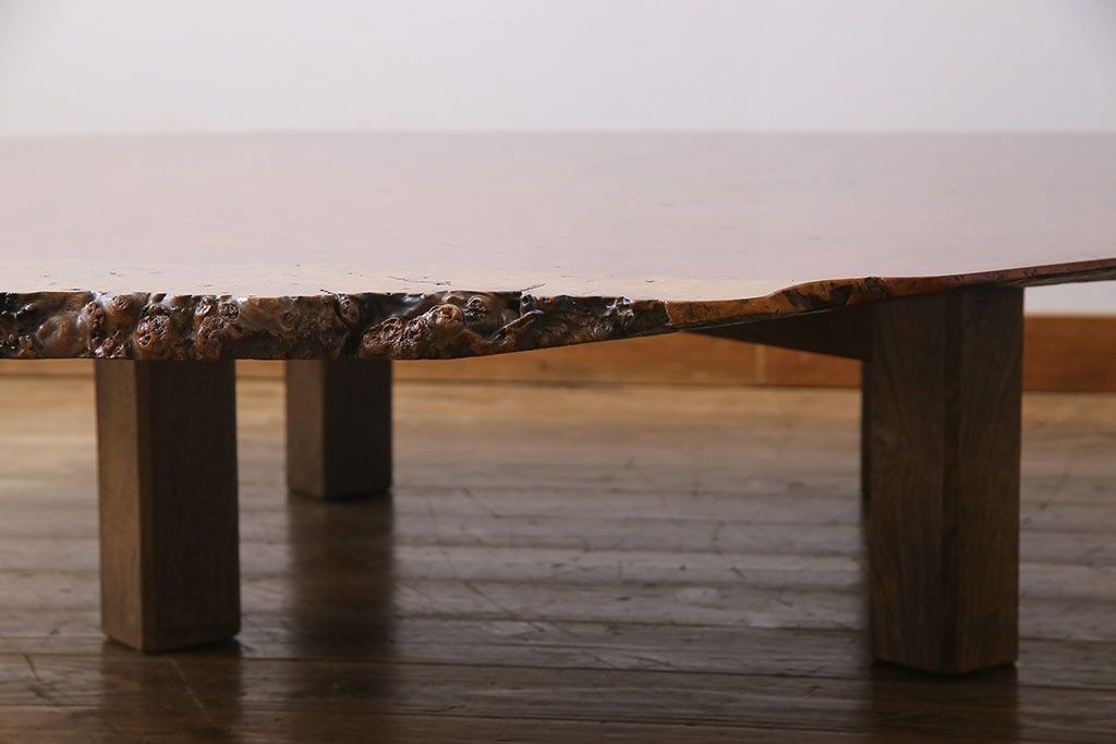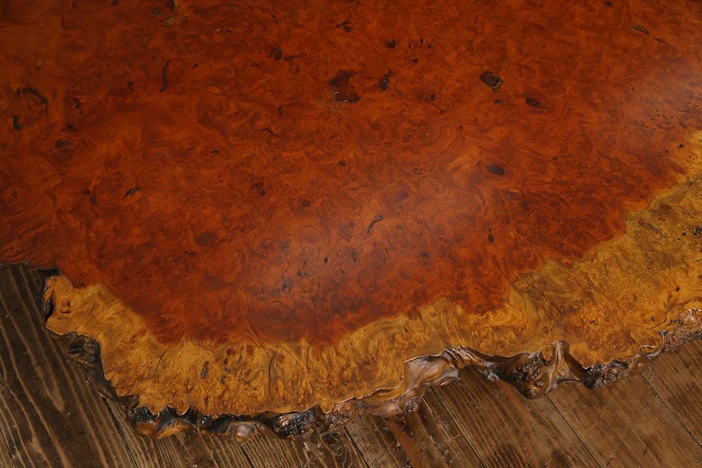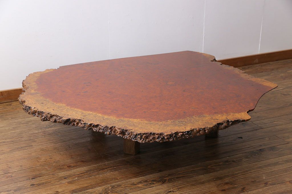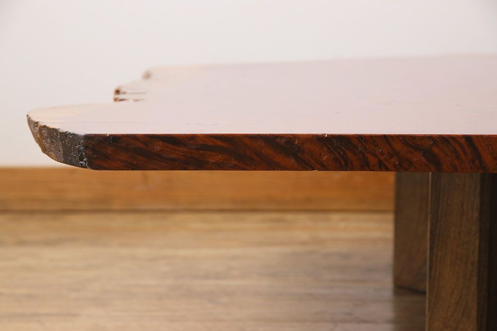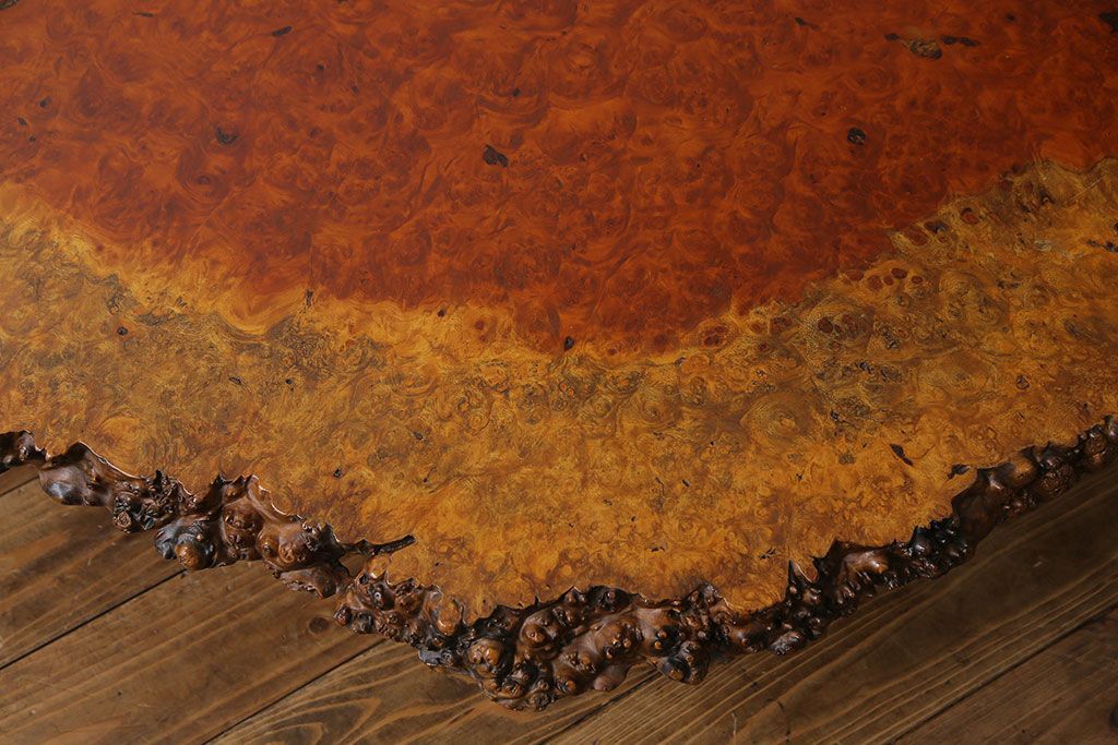 ラフジュ工房> テーブル> 座卓 > アンティーク家具 昭和後期 カリン鳥眼杢材 花梨 木そのままの味わいが存在感を放つローテーブル(座卓)