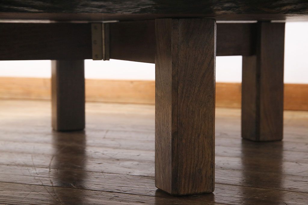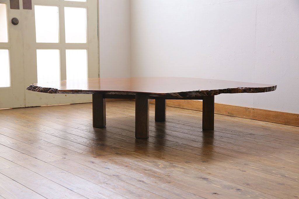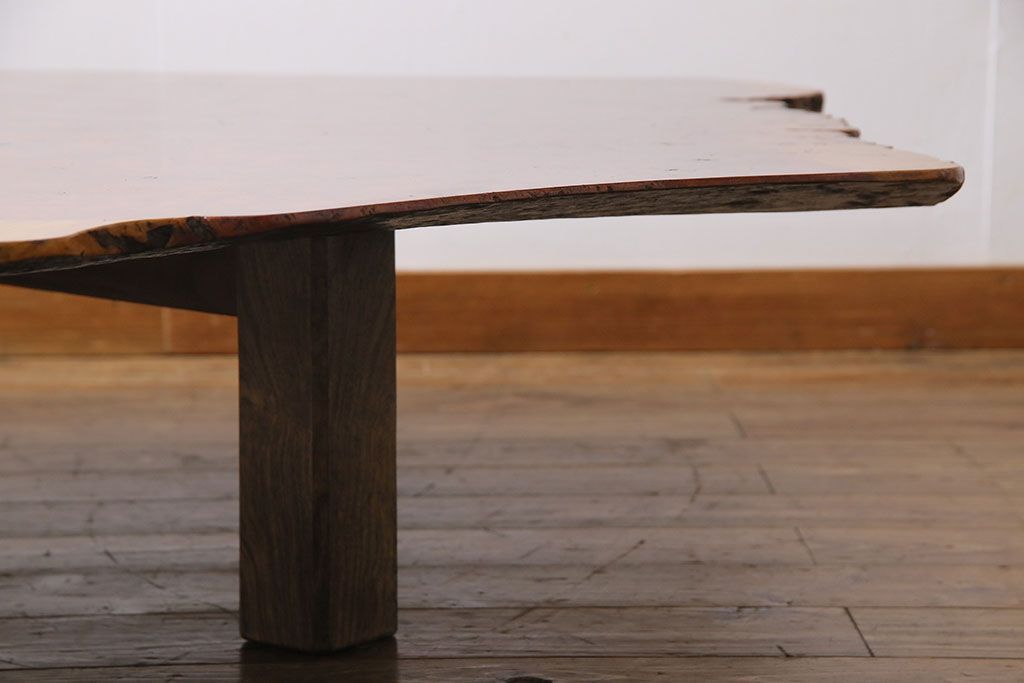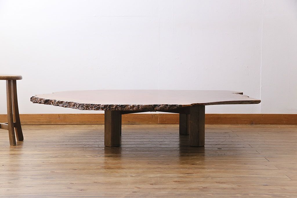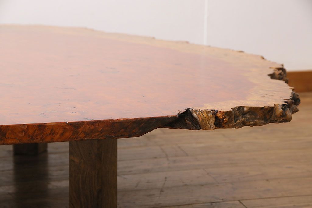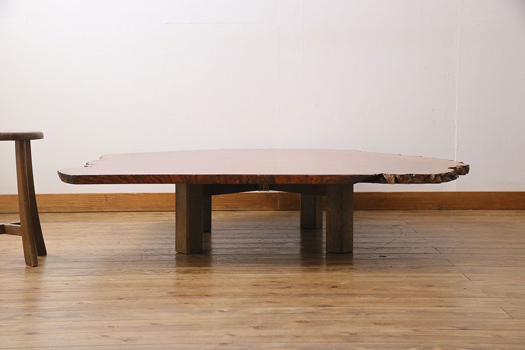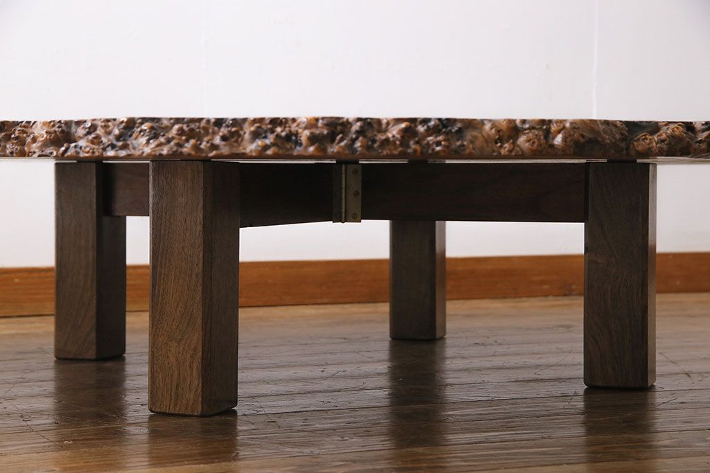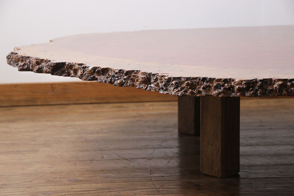 ラフジュ工房> テーブル> 座卓 > アンティーク家具 昭和後期 カリン鳥眼杢材 花梨 木そのままの味わいが存在感を放つローテーブル(座卓)