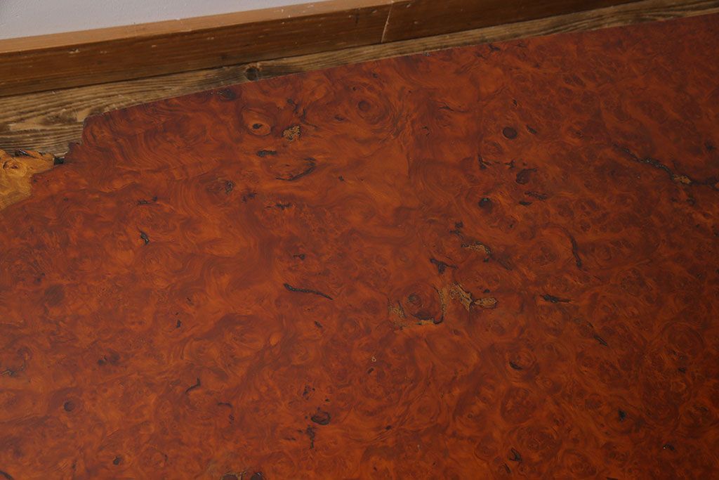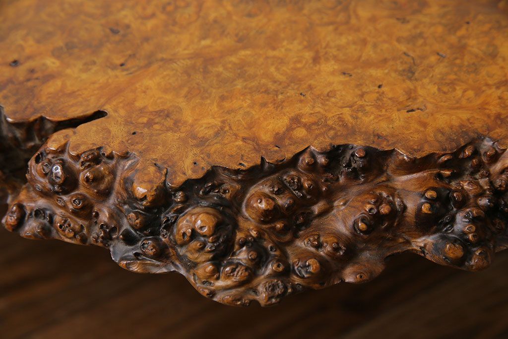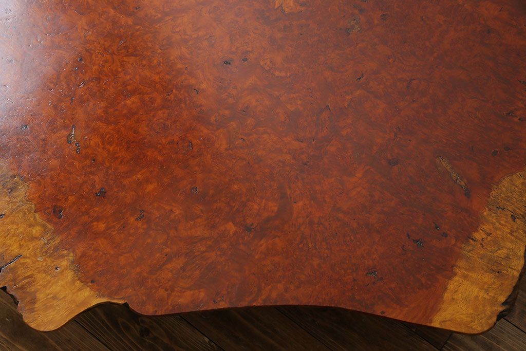 ラフジュ工房> テーブル> センターテーブル・ローテーブル > アンティーク家具 昭和後期 カリン鳥眼杢材 花梨 木そのままの味わいが存在感を放つローテーブル(座卓)