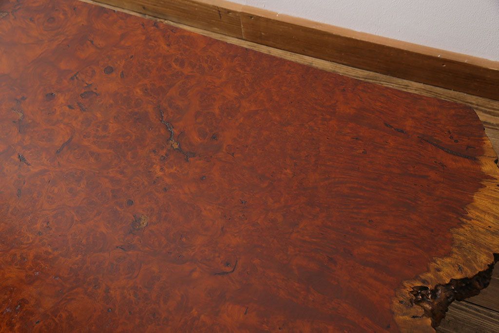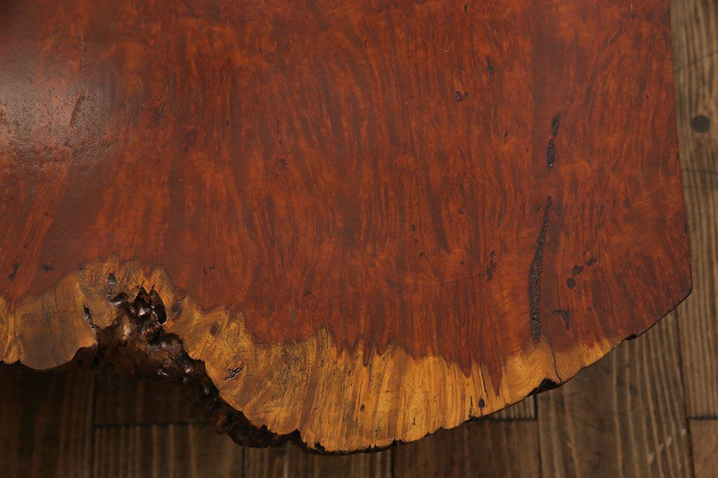 アンティーク家具 昭和後期 カリン鳥眼杢材 花梨 木そのままの味わいが存在感を放つローテーブル(座卓)