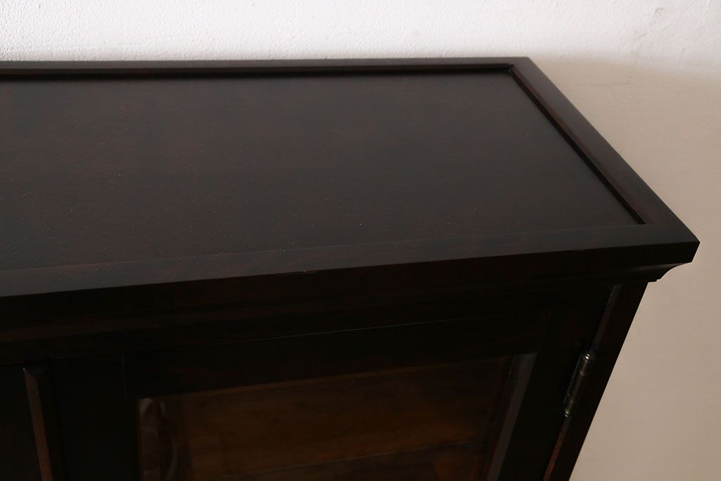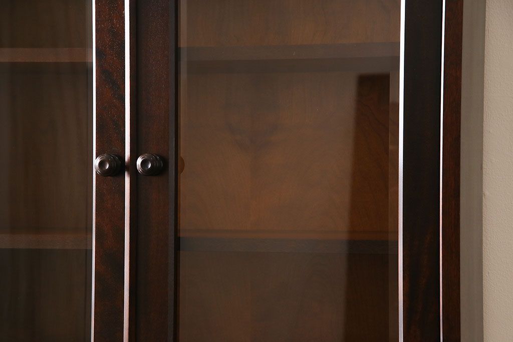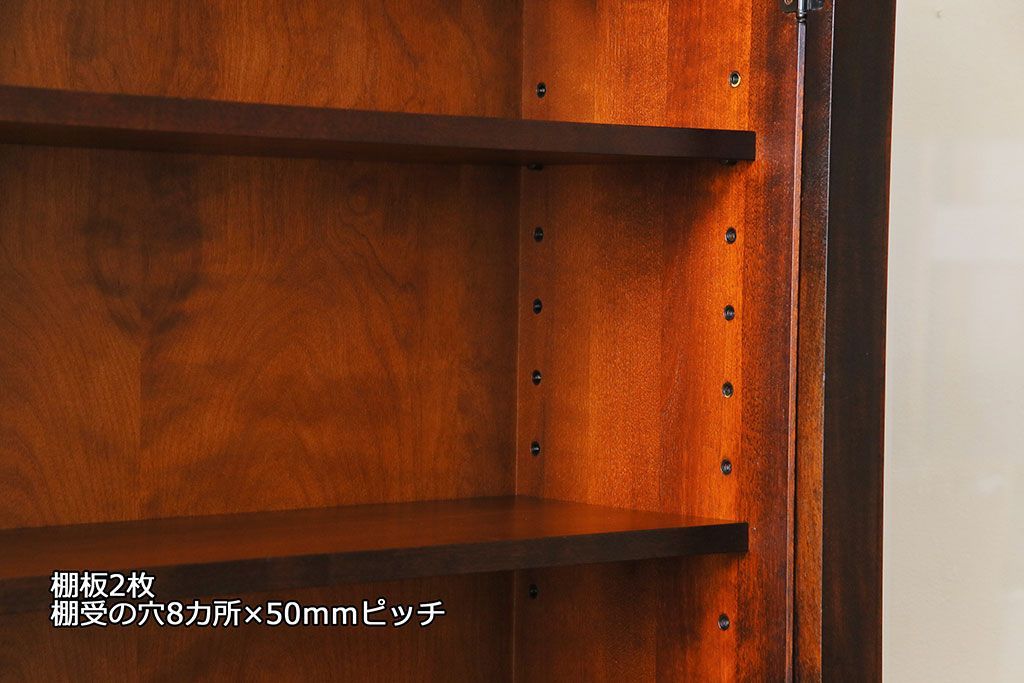 ガラス扉の中はとてもきれいな状態です。棚板は取り外しが可能で、高さを調節することもできます。