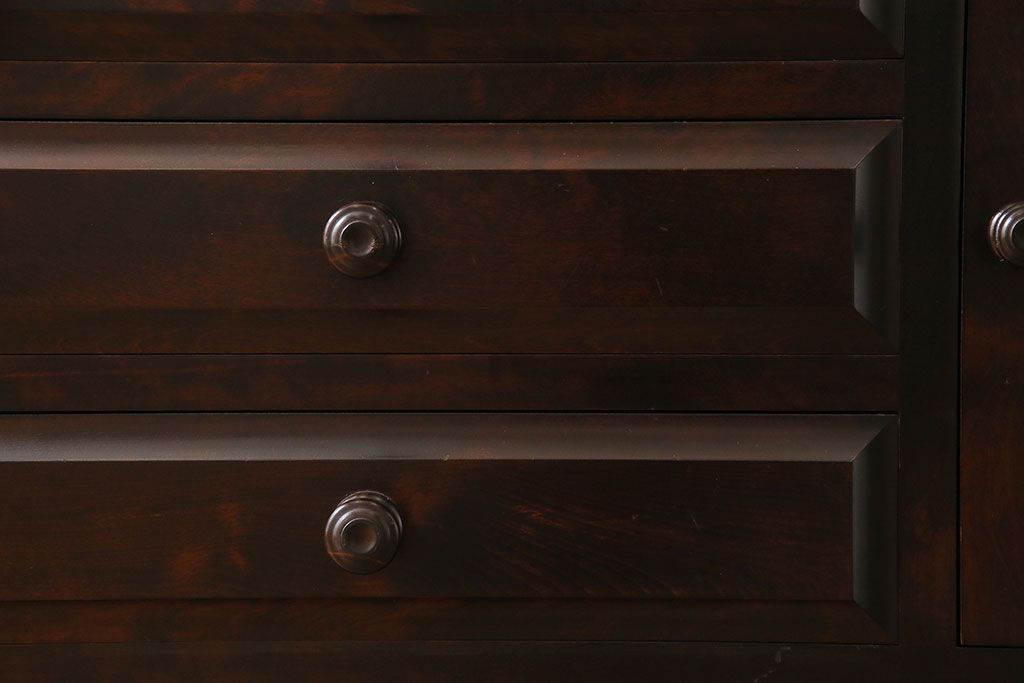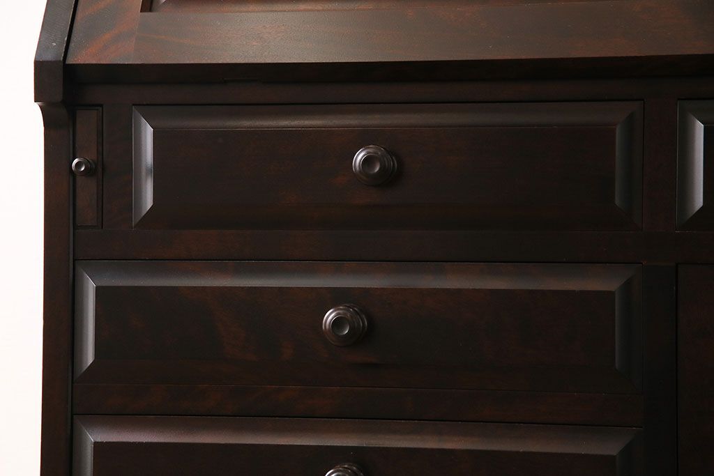 - 北海道民芸家具は、素材にとことんこだわって家具の制作を行っているブランドです。北海道の大地で育った質の良い樺材を使用しており、その木肌は緻密で繊細なのが特徴です。こちらのライティングビューローも、随所から樺材の豊かでなめらかな杢目を感じることができます。自然が織りなす上品なデザインが魅力的ですね。