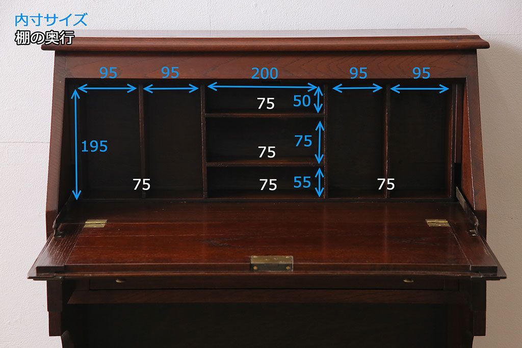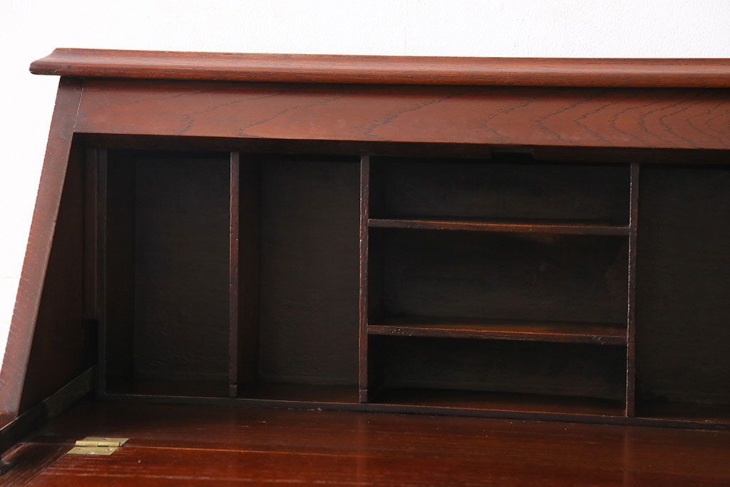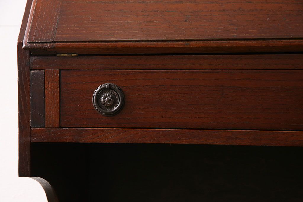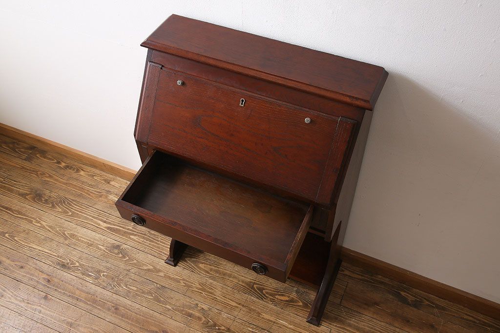 ラフジュ工房> デスク > アンティーク家具 イギリスアンティーク オーク材 コンパクトなライティングビューロー(デスク、在宅ワーク、在宅用簿記机)