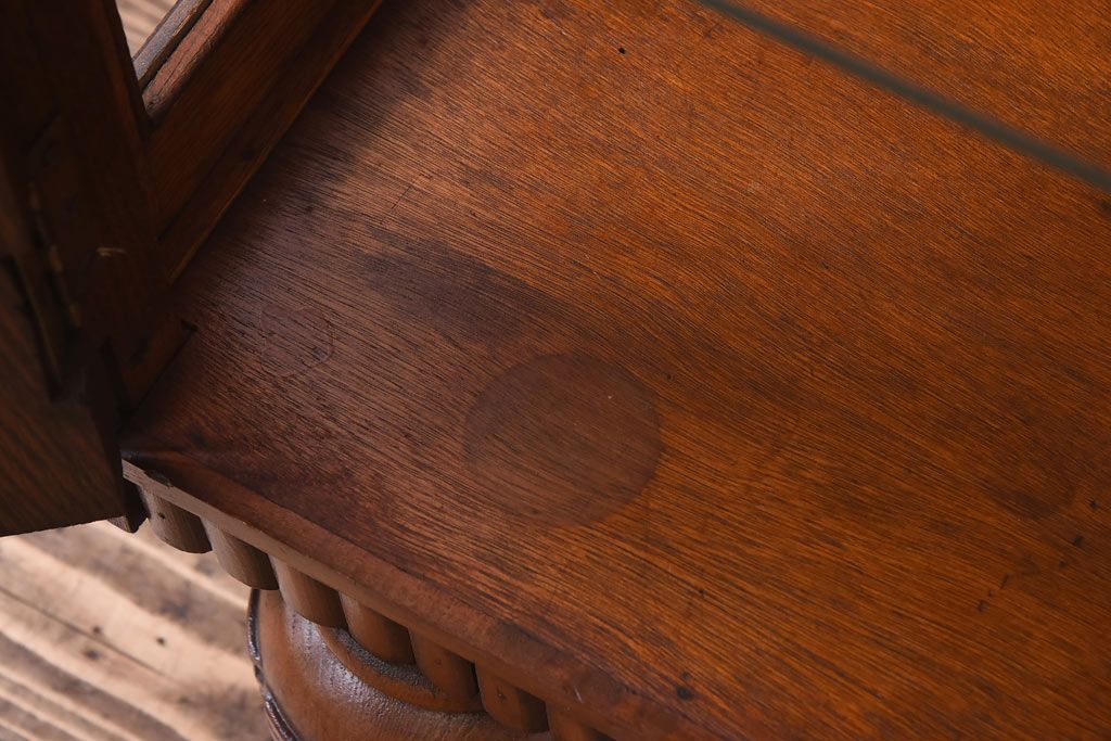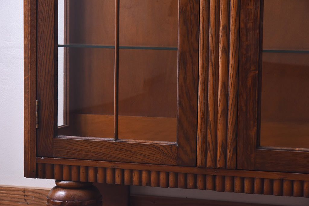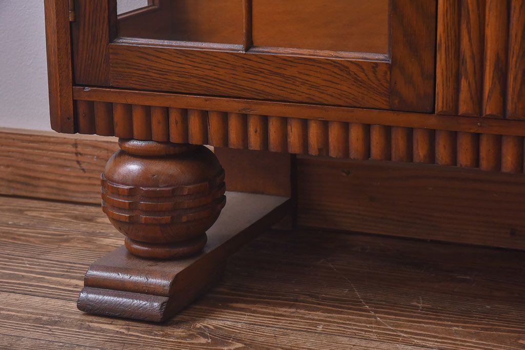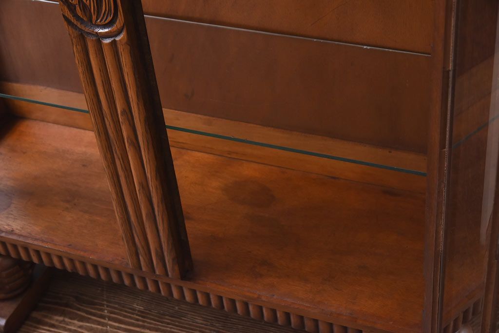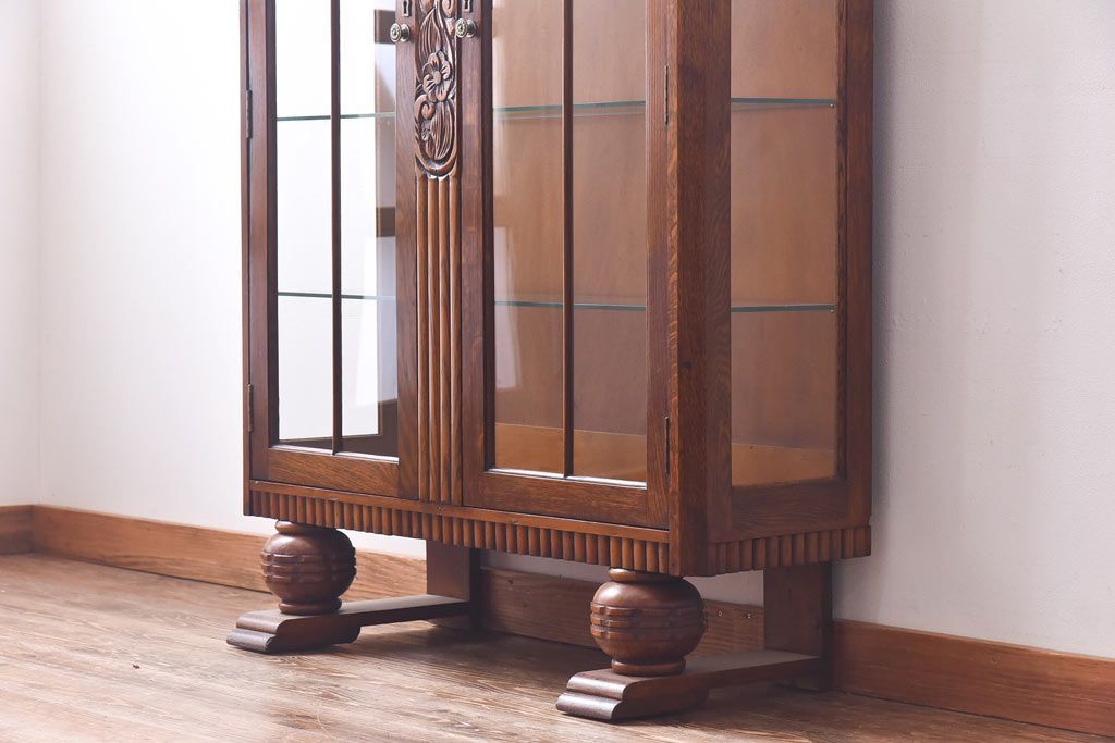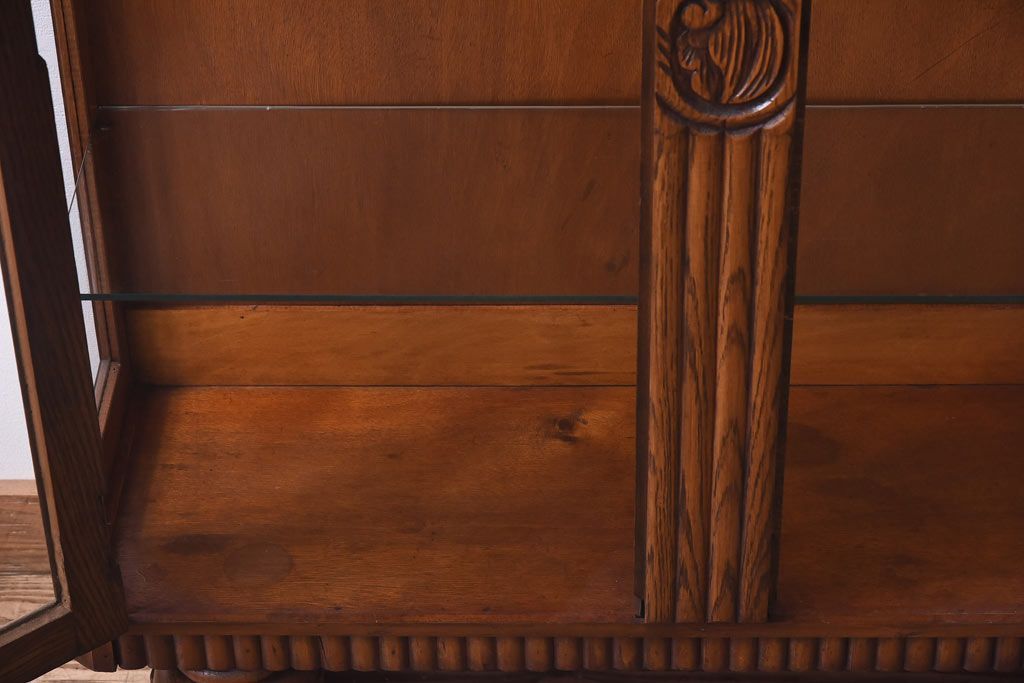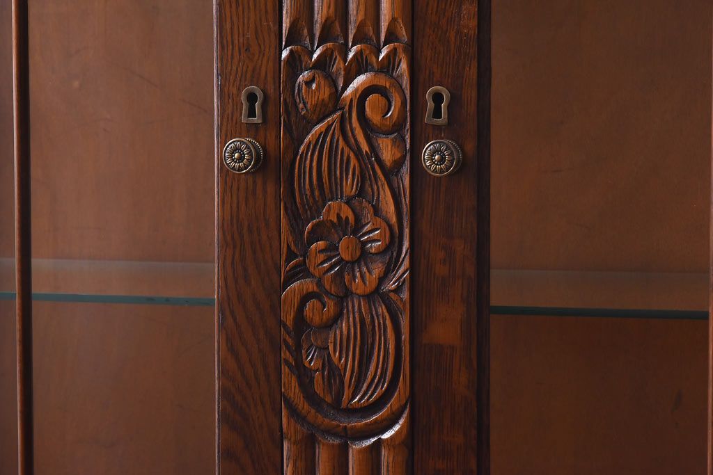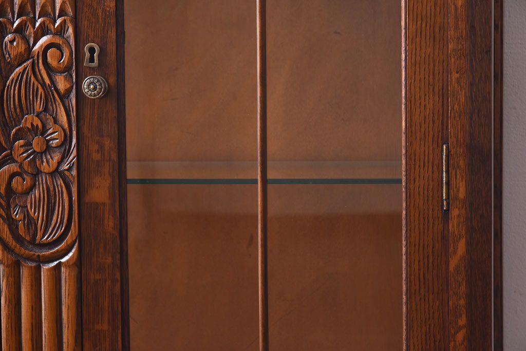 ラフジュ工房> キャビネット・戸棚> 本箱 > アンティーク家具 イギリスアンティーク オーク材 植物モチーフの意匠が魅力のショーケース(ガラスケース、キャビネット)