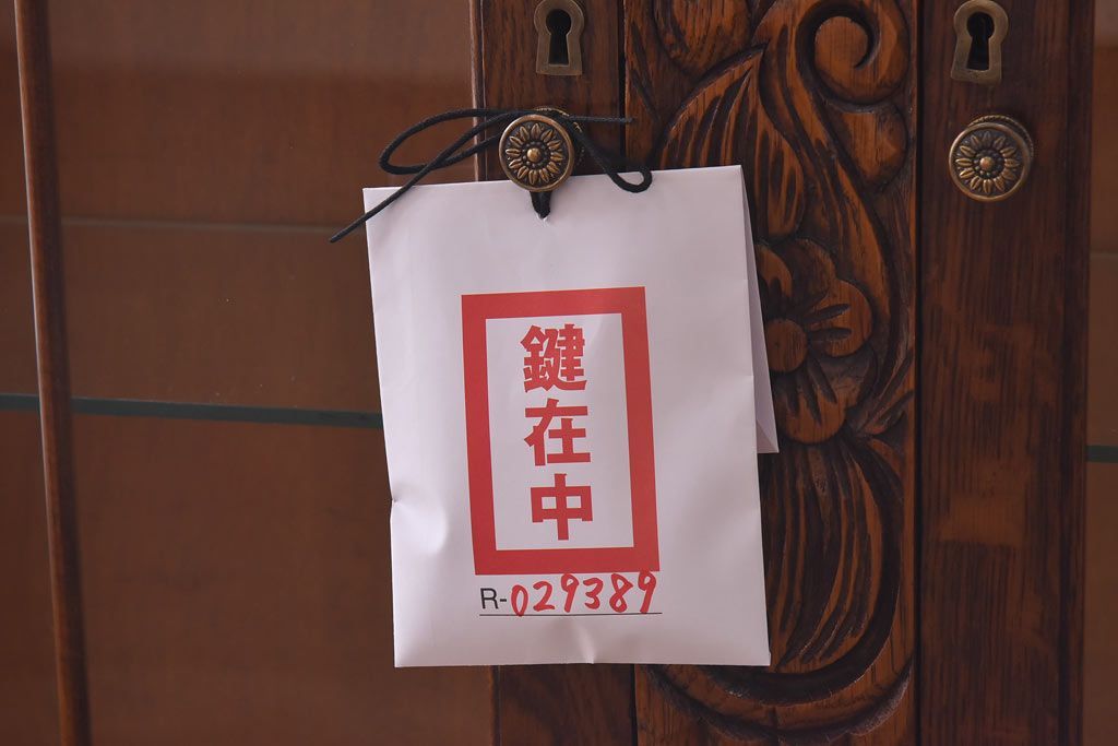 ラフジュ工房> 店舗什器 > アンティーク家具 イギリスアンティーク オーク材 植物モチーフの意匠が魅力のショーケース(ガラスケース、キャビネット)