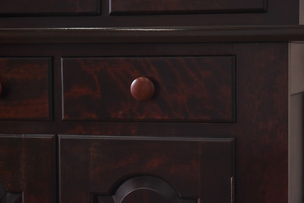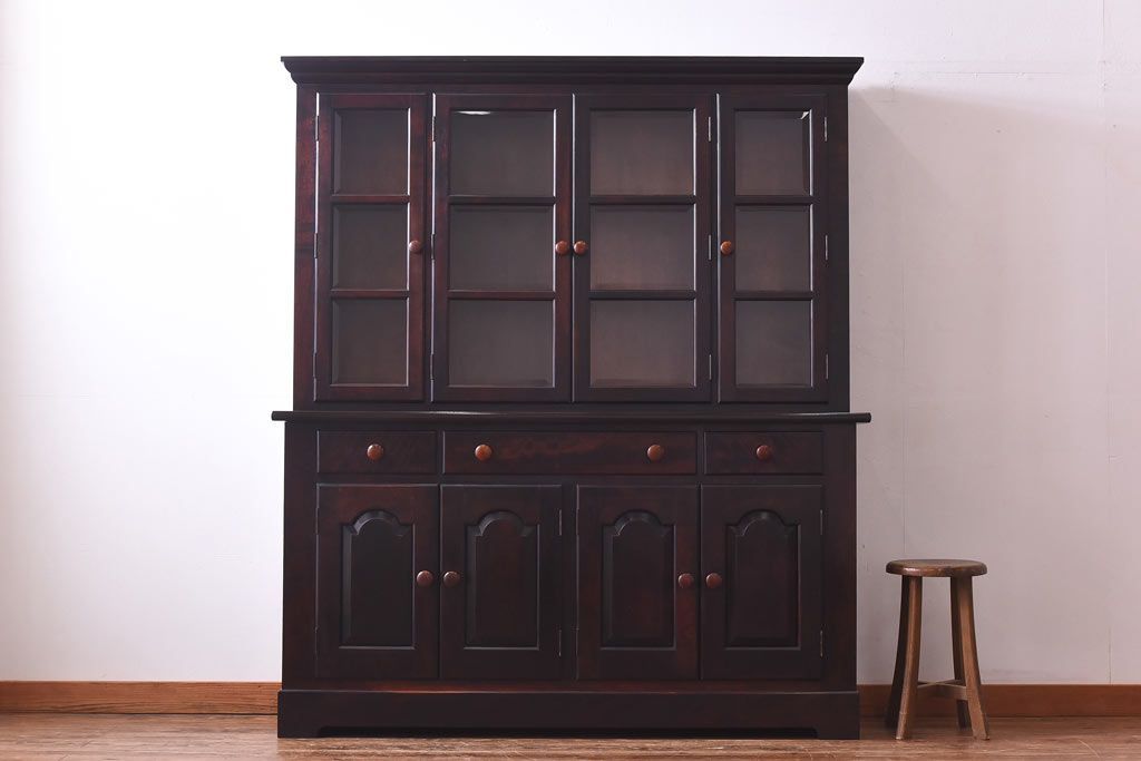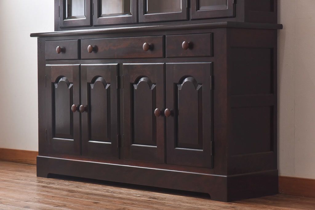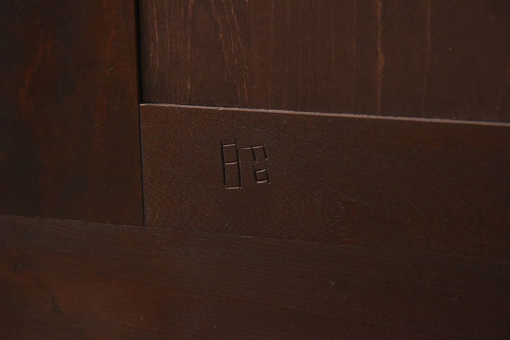 ラフジュ工房> 民芸家具 > 中古 松本民芸家具 レアもの!大きめの取っ手が印象的なF型食器棚(カップボード、飾り棚、収納棚)(定価約100万円)
