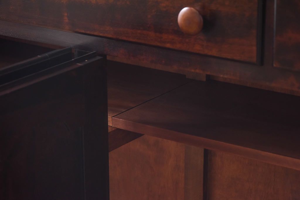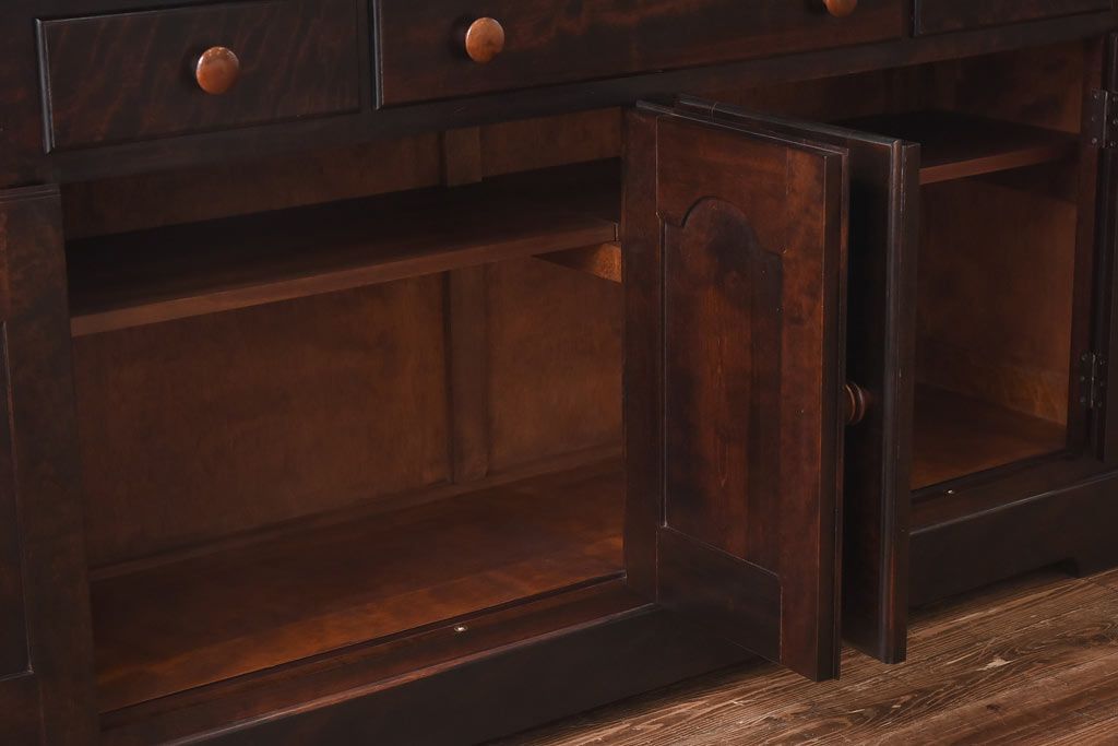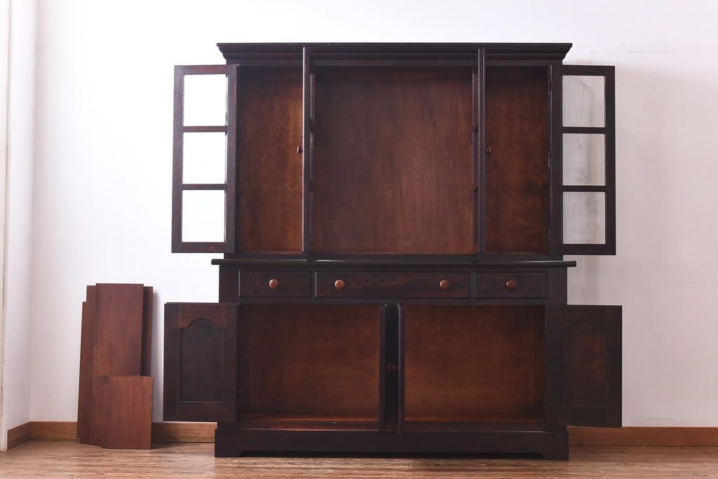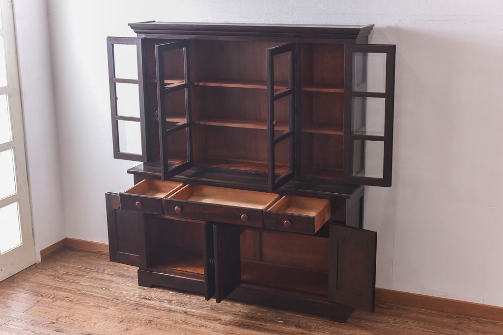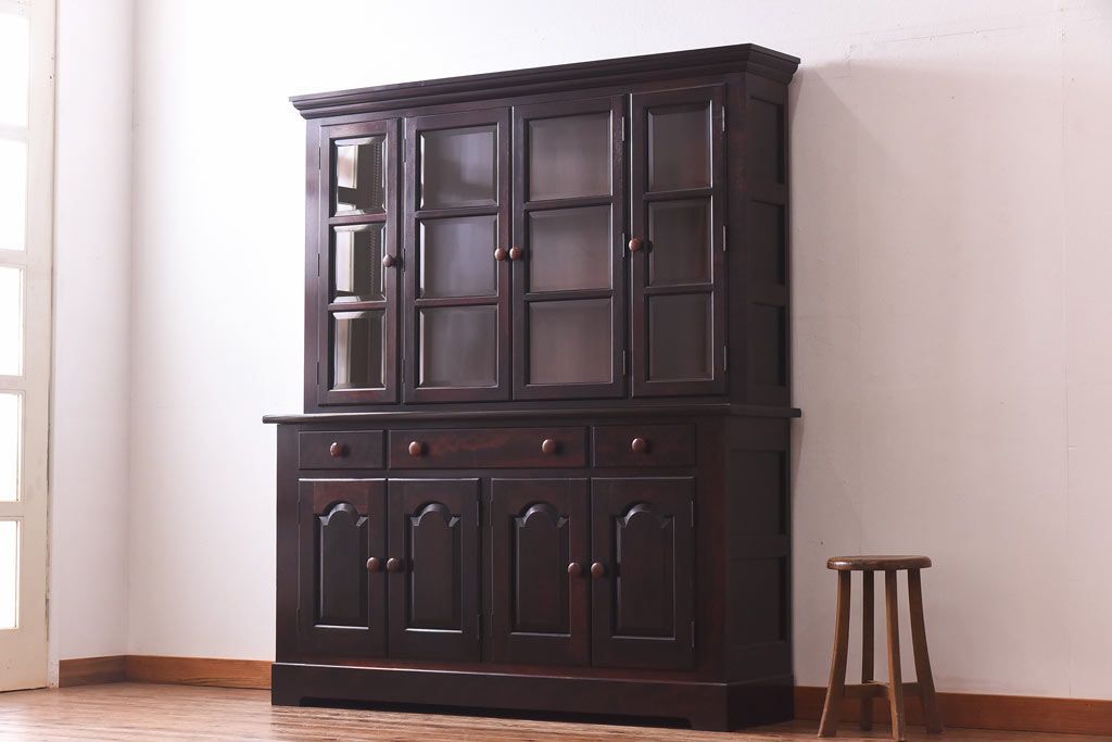 ラフジュ工房> 民芸家具 > 中古 松本民芸家具 レアもの!大きめの取っ手が印象的なF型食器棚(カップボード、飾り棚、収納棚)(定価約100万円)