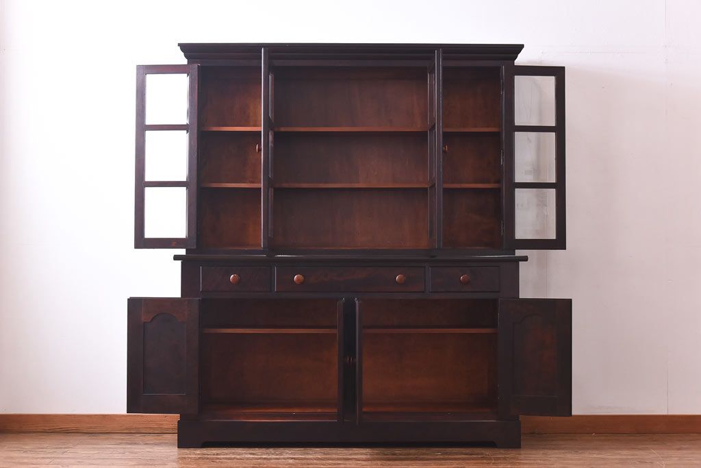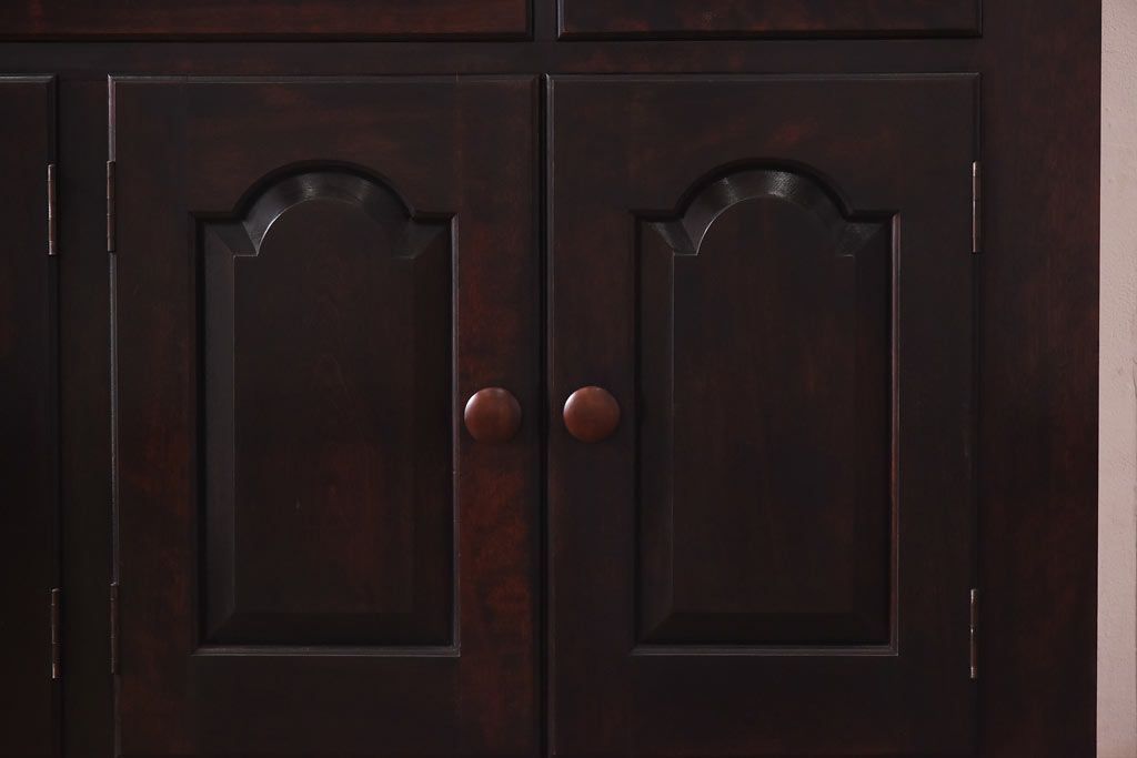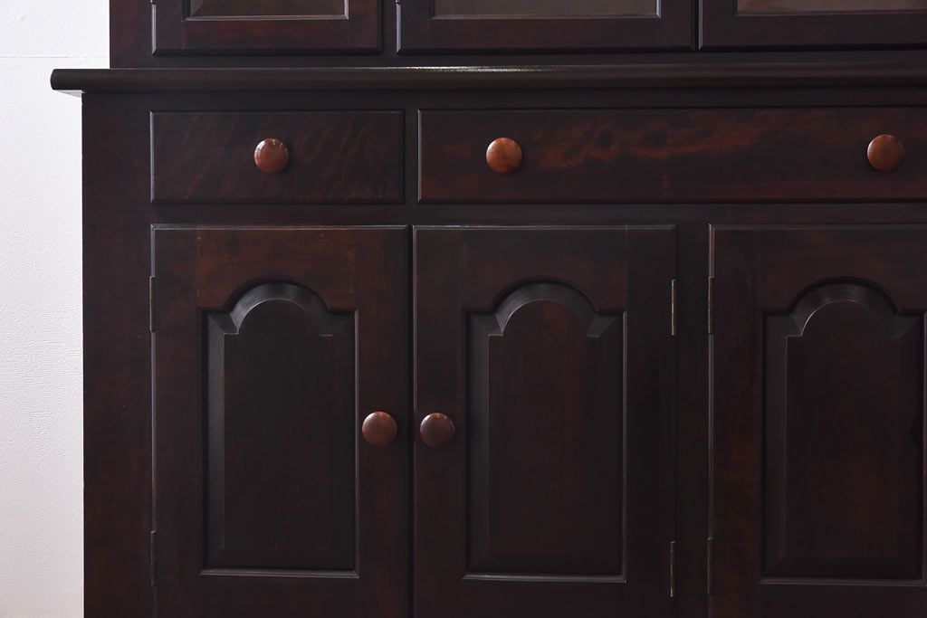 ラフジュ工房> キャビネット・戸棚> 食器棚・カップボード > 中古 松本民芸家具 レアもの!大きめの取っ手が印象的なF型食器棚(カップボード、飾り棚、収納棚)(定価約100万円)