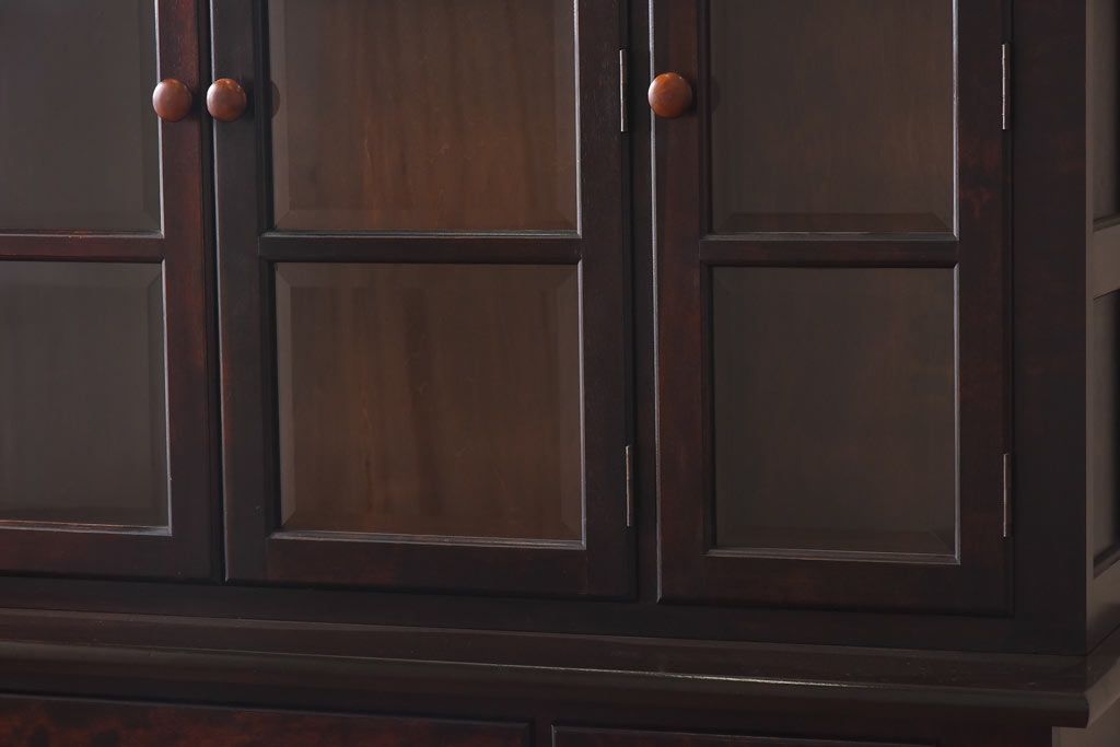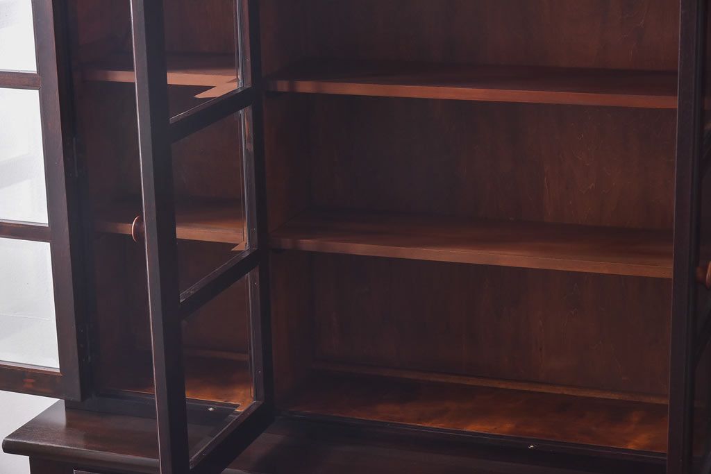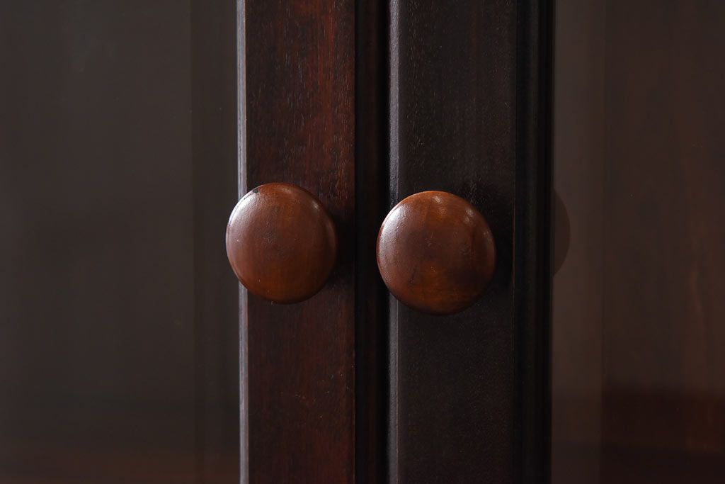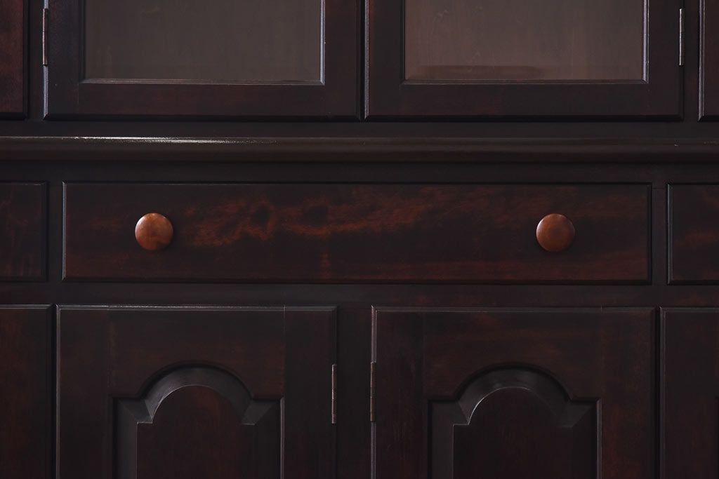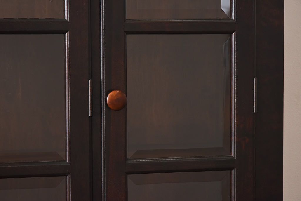 ラフジュ工房> キャビネット・戸棚> 本箱 > 中古 松本民芸家具 レアもの!大きめの取っ手が印象的なF型食器棚(カップボード、飾り棚、収納棚)(定価約100万円)