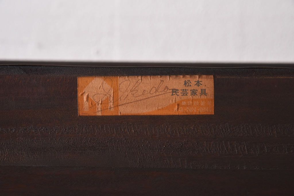 中古 松本民芸家具 レアもの!大きめの取っ手が印象的なF型食器棚(カップボード、飾り棚、収納棚)(定価約100万円)