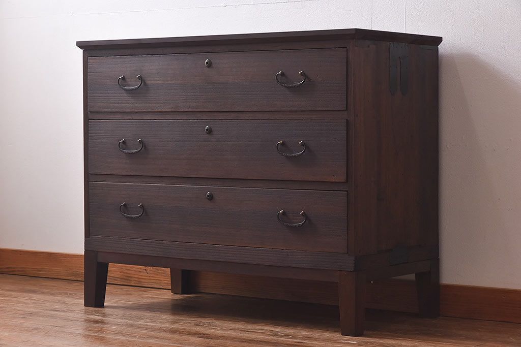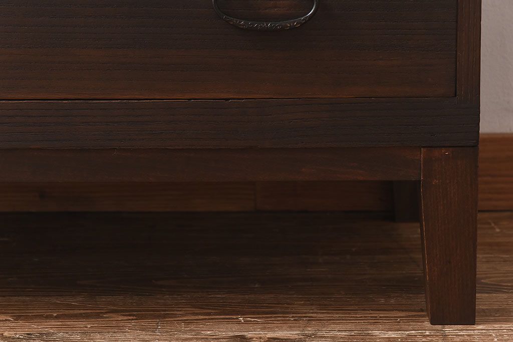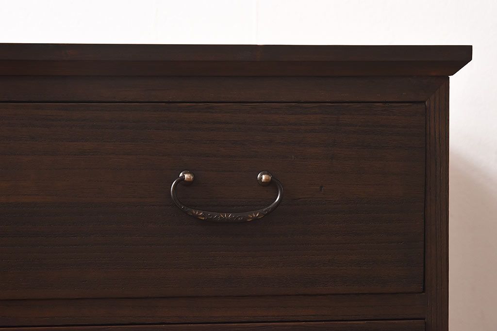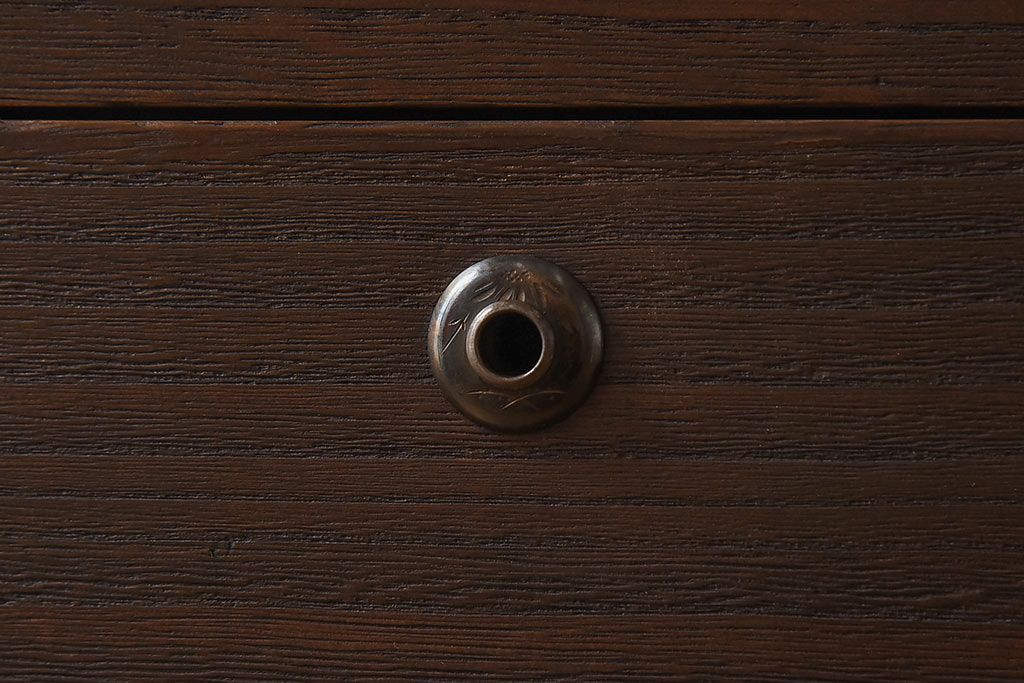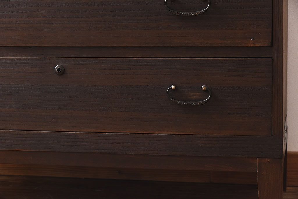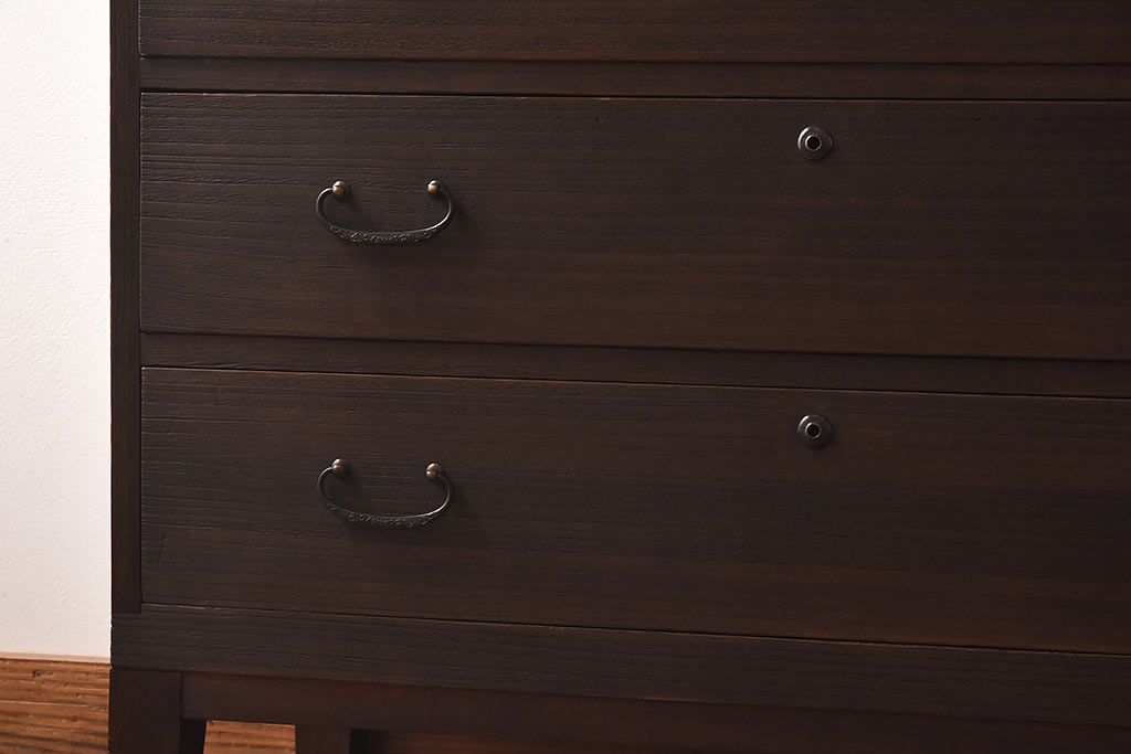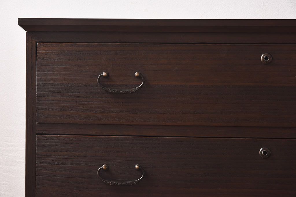 ラフジュ工房> 和箪笥> 衣装箪笥 > アンティーク家具 昭和中期 当時ものの取っ手が愛らしい脚付箪笥ローチェスト(ローボード、衣装箪笥)