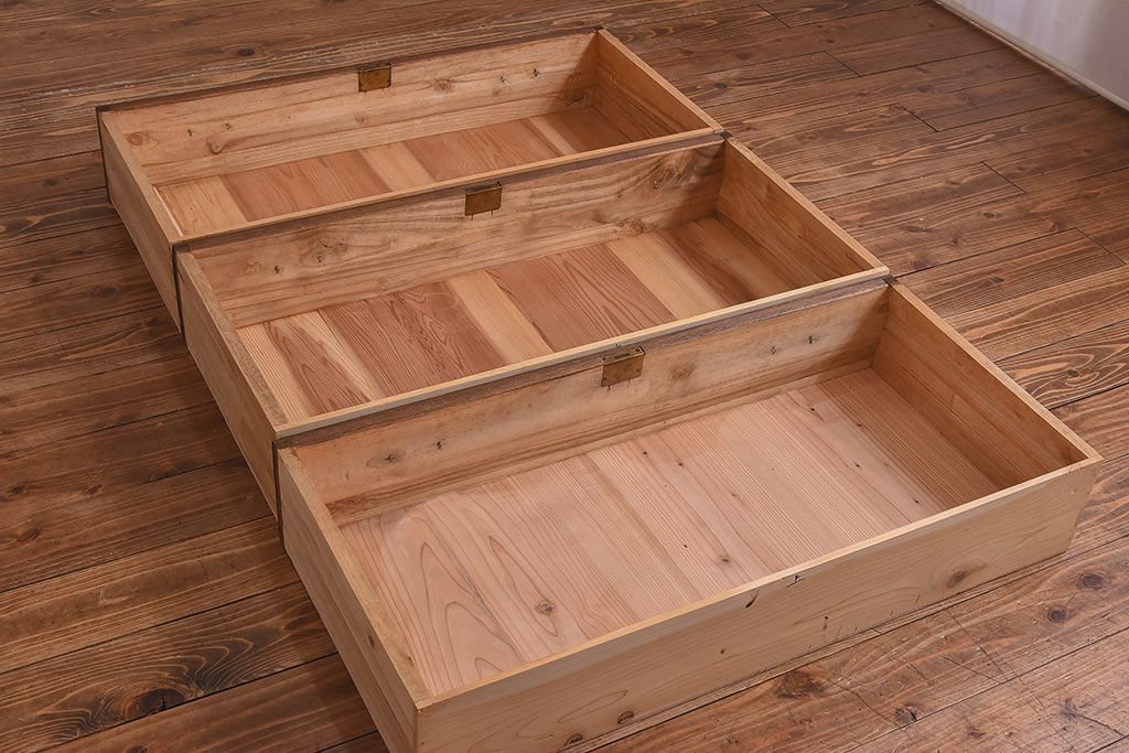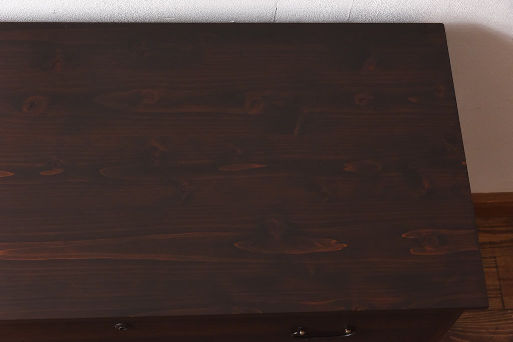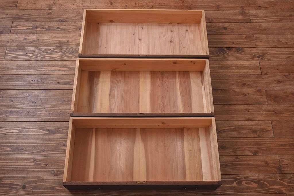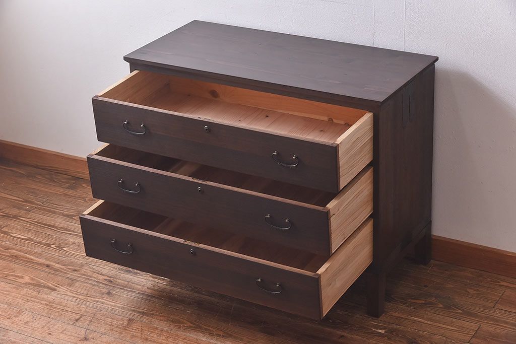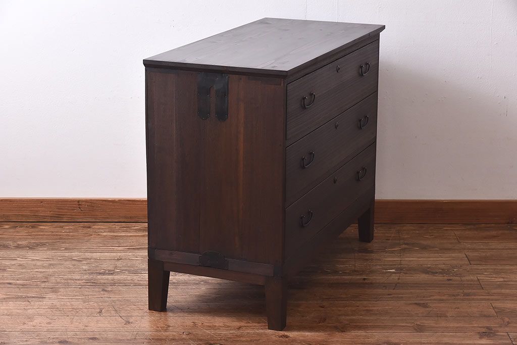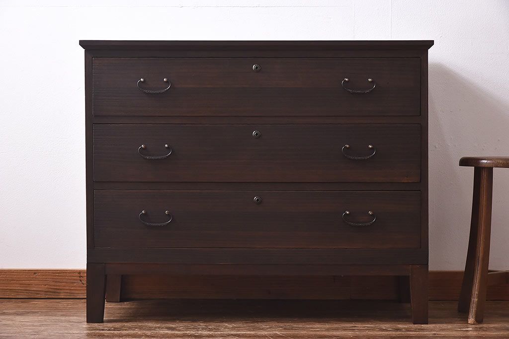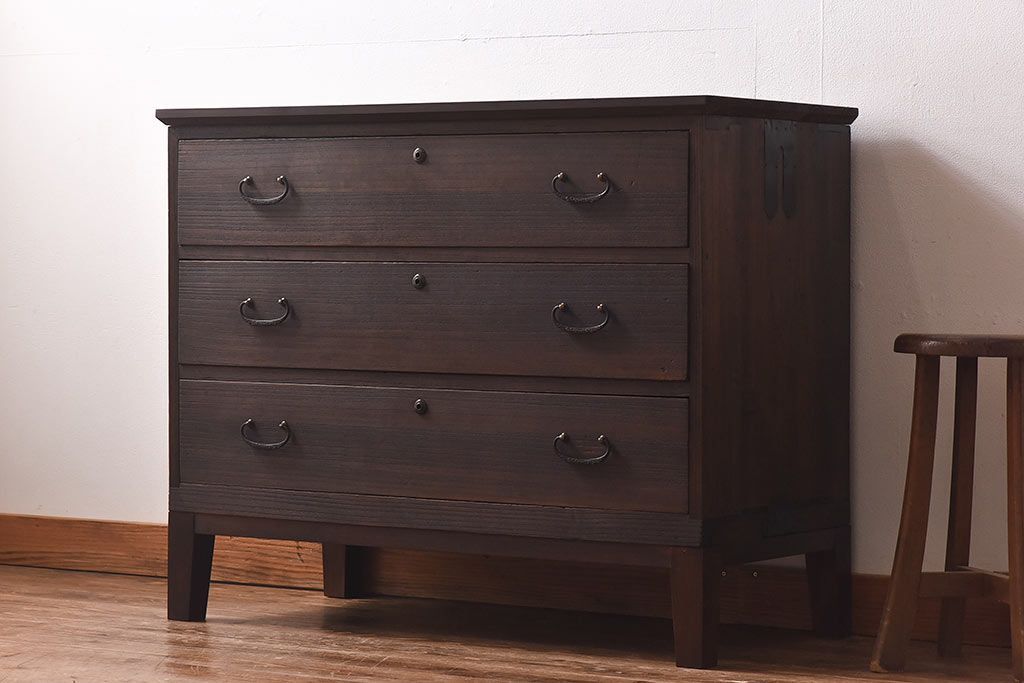 ラフジュ工房> 和箪笥> 衣装箪笥 > アンティーク家具 昭和中期 当時ものの取っ手が愛らしい脚付箪笥ローチェスト(ローボード、衣装箪笥)
