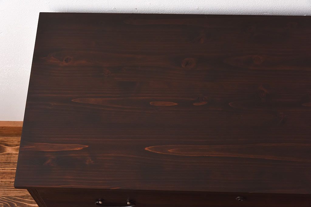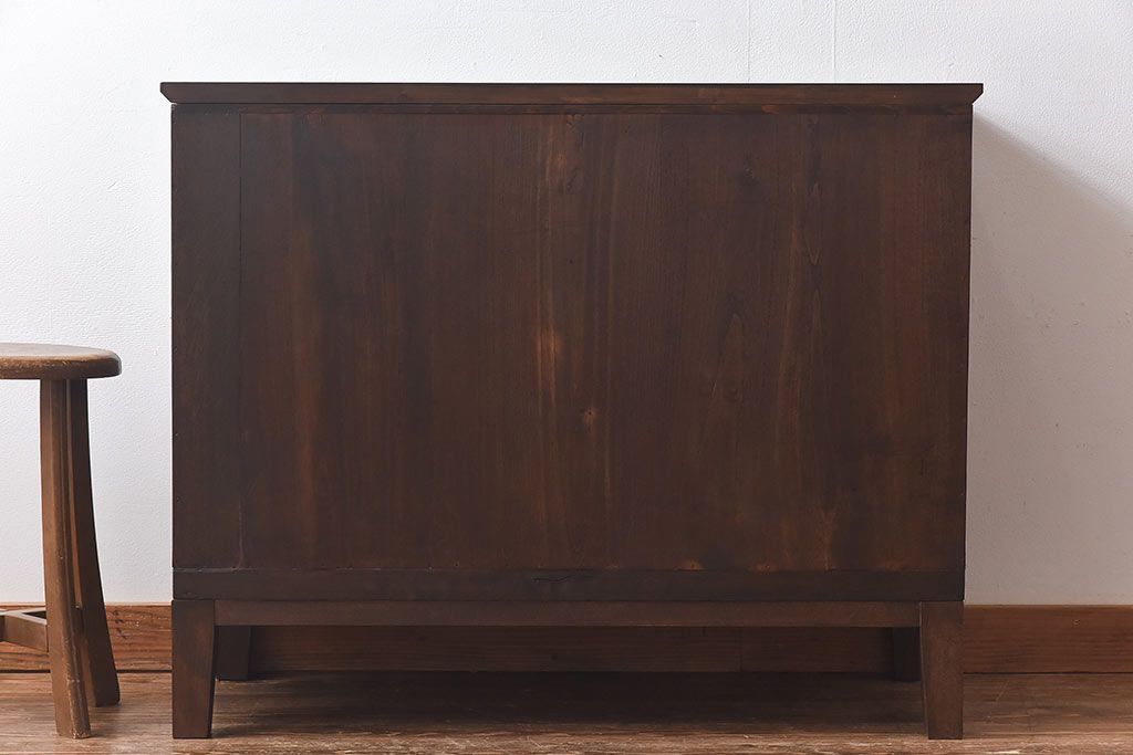 ラフジュ工房> キャビネット・戸棚> テレビ台・ローボード > アンティーク家具 昭和中期 当時ものの取っ手が愛らしい脚付箪笥ローチェスト(ローボード、衣装箪笥)