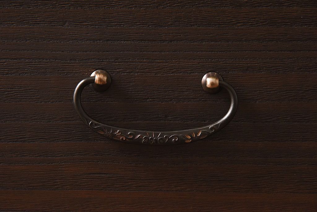 アンティーク家具 昭和中期 当時ものの取っ手が愛らしい脚付箪笥ローチェスト(ローボード、衣装箪笥)