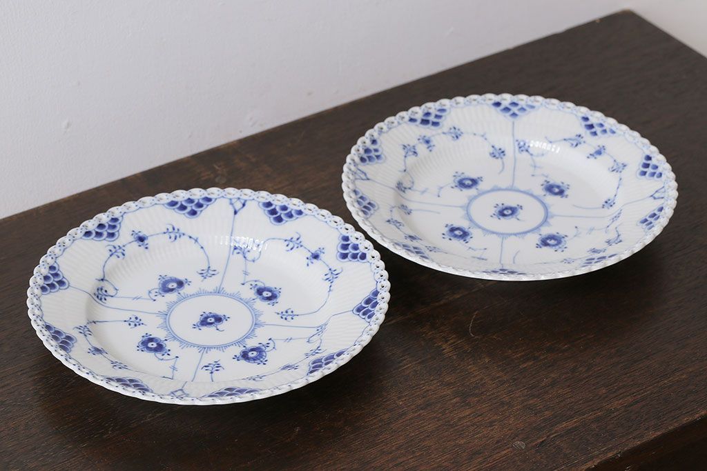 ラフジュ工房> 洋食器・キッチン用品> 皿・プレート > 中古 ROYAL COPENHAGEN(ロイヤルコペンハーゲン) ブルーフルーテッド フルレース 23cmプレート2枚セット(洋食器)(定価約7万6千円)(1)