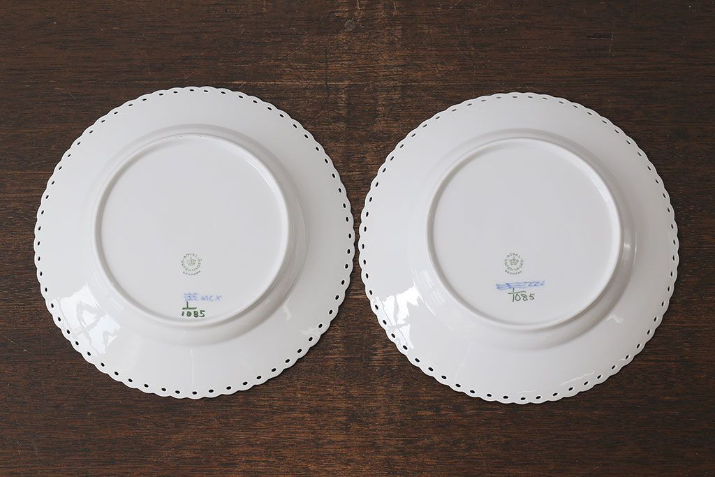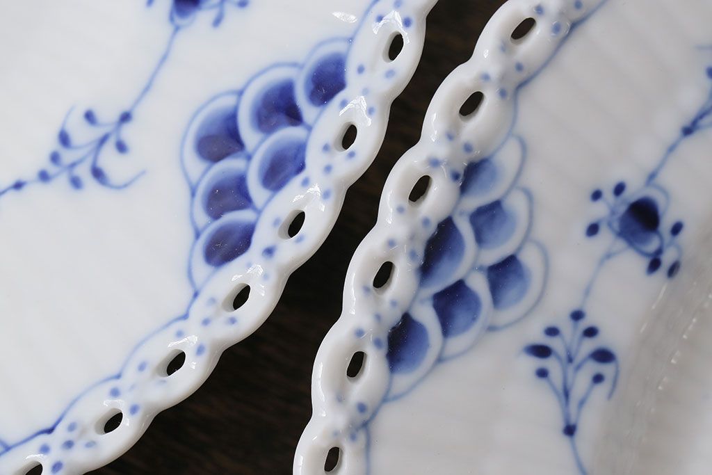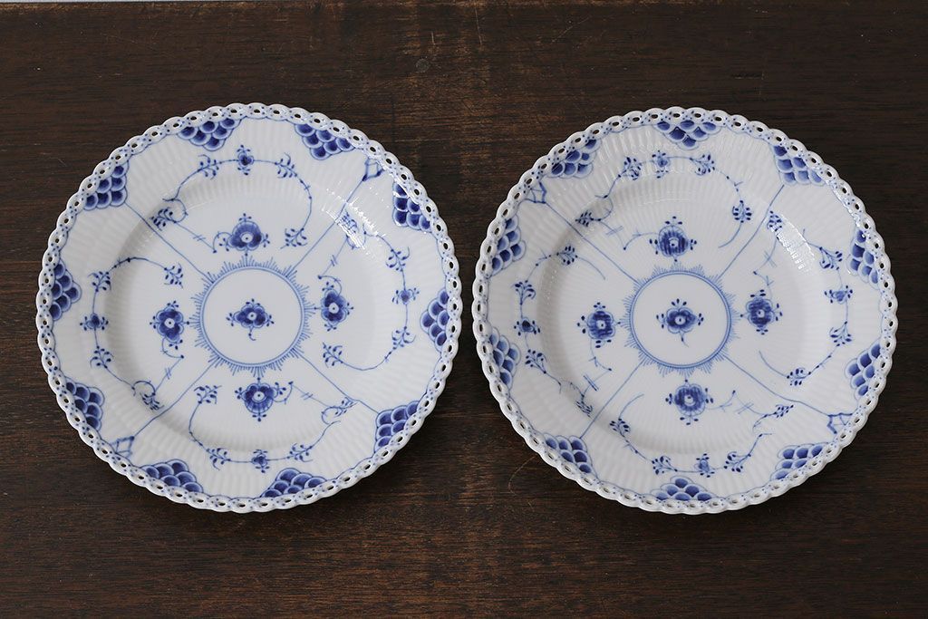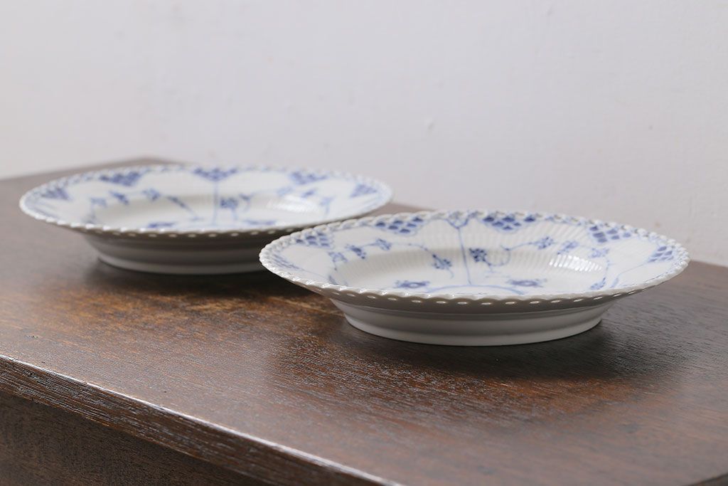 中古 ROYAL COPENHAGEN(ロイヤルコペンハーゲン) ブルーフルーテッド フルレース 23cmプレート2枚セット(洋食器)(定価約7万6千円)(1)