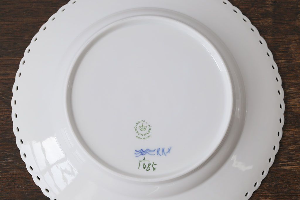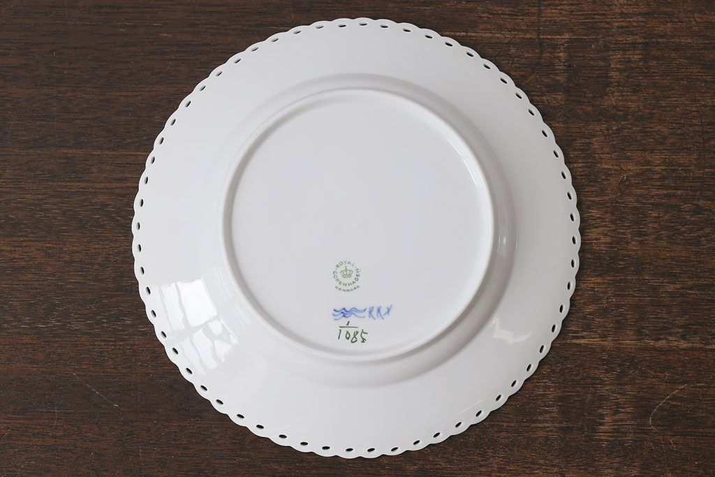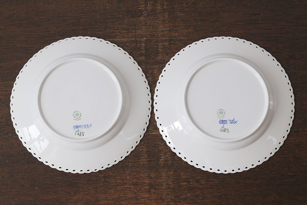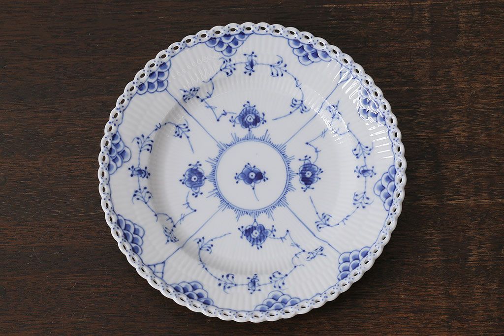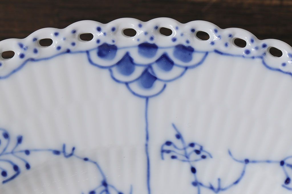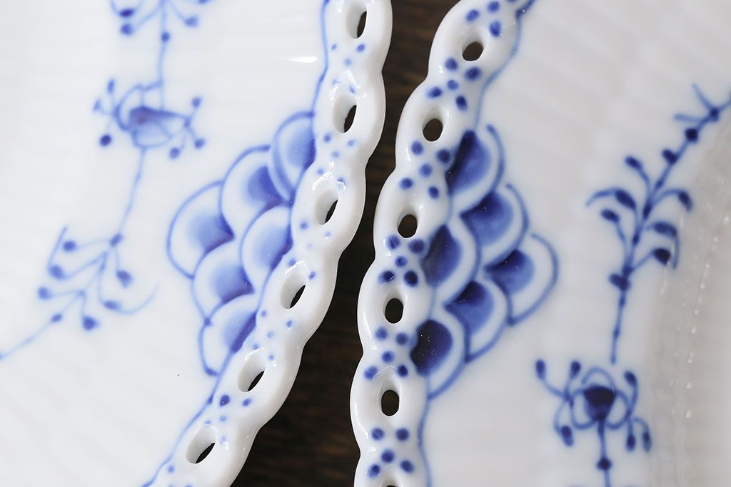 アンティーク雑貨 中古 ROYAL COPENHAGEN(ロイヤルコペンハーゲン) ブルーフルーテッド フルレース 23cmプレート2枚セット(ディーププレート、洋食器)(定価約7万6千円)(2)